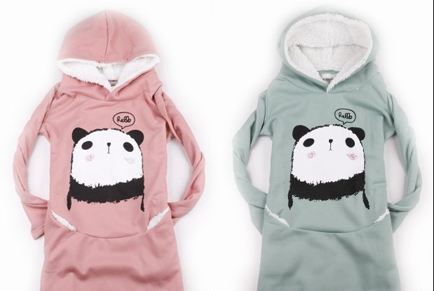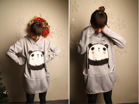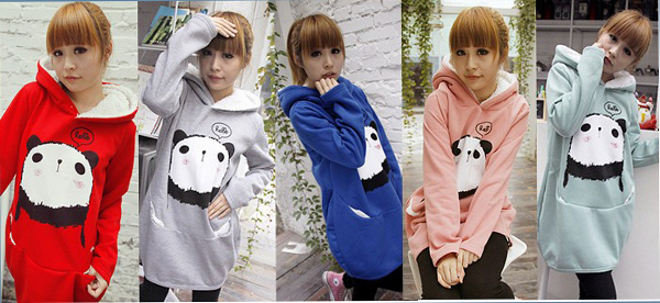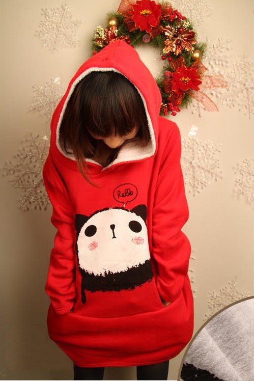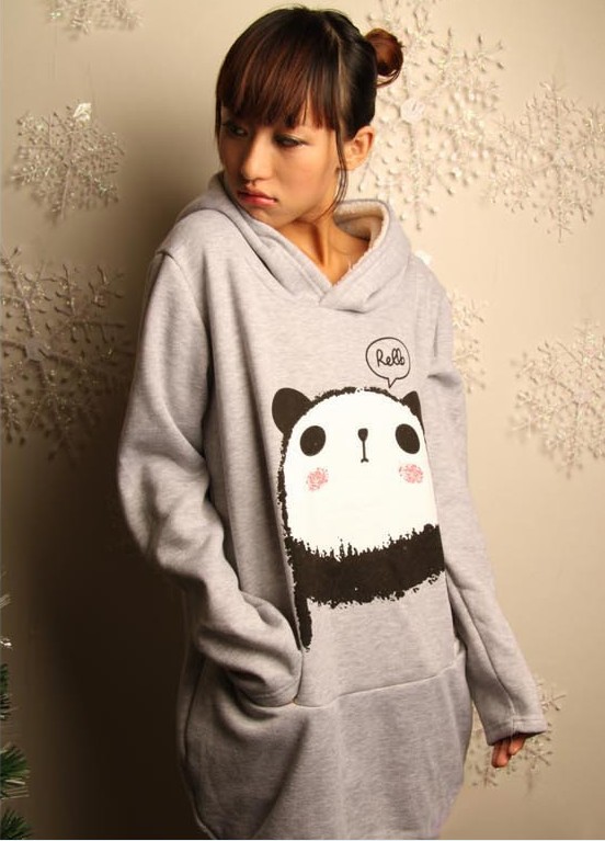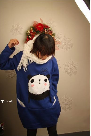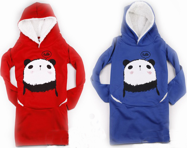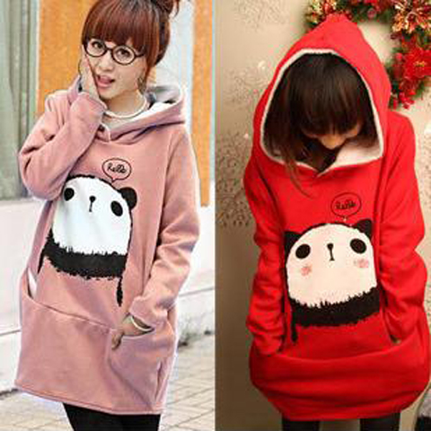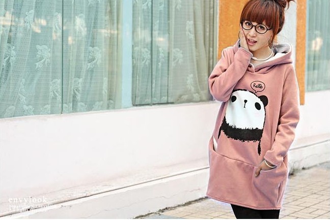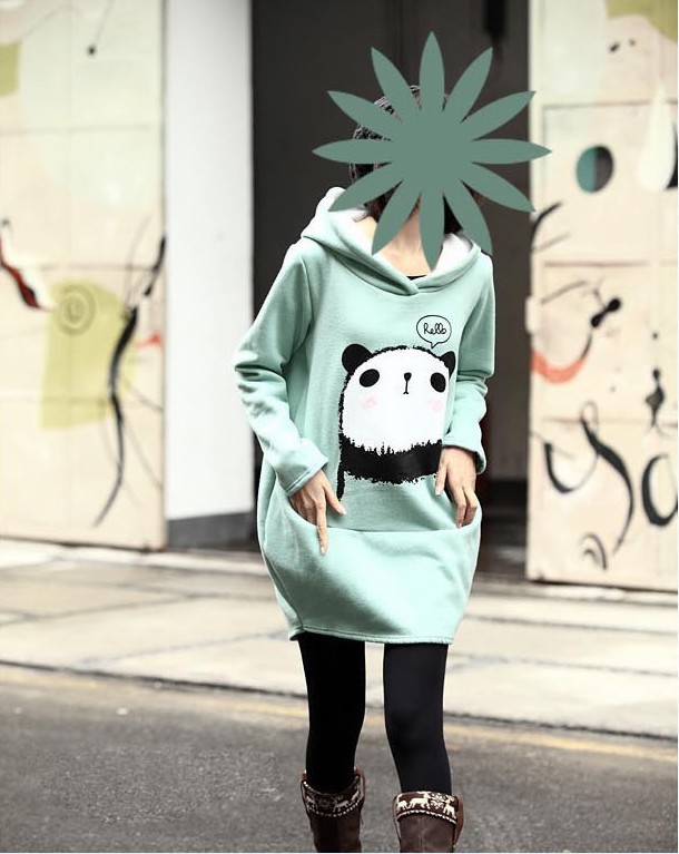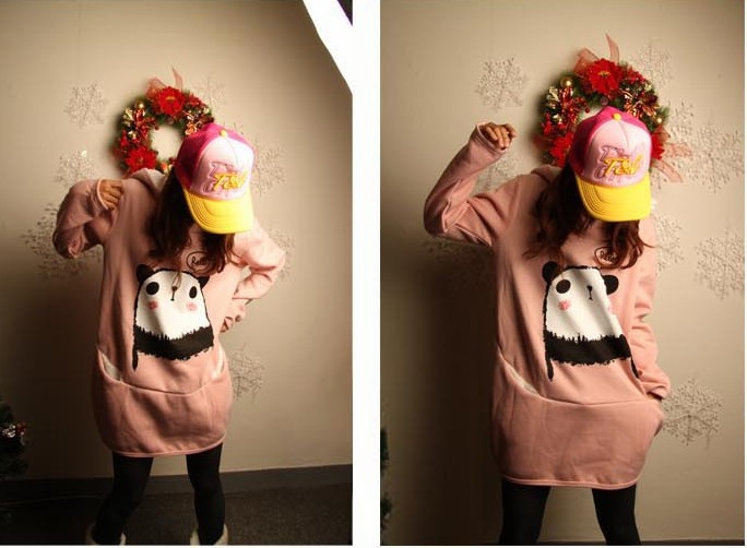 Amanda49 New Arrival Korean Style Loose Long Pattern Hooded Fleeces |
