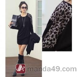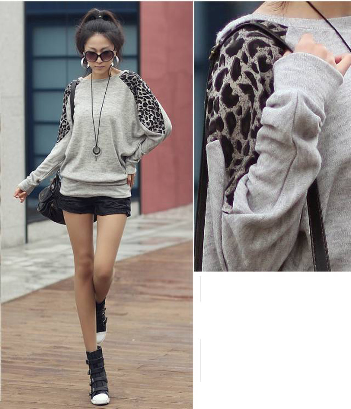 Amanda49 New Arrival Leopard Embellish Round Collar and Long Sleeve T-shirt |