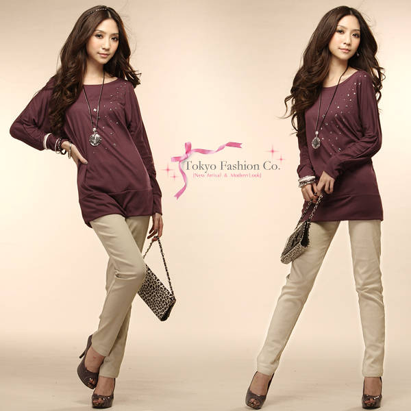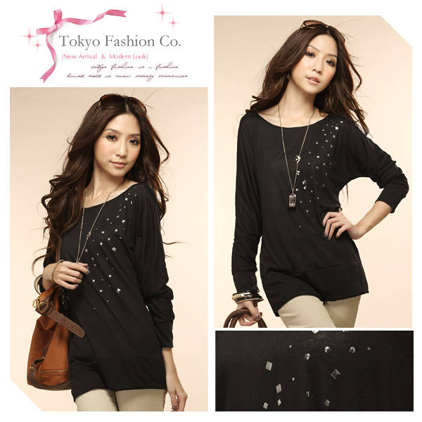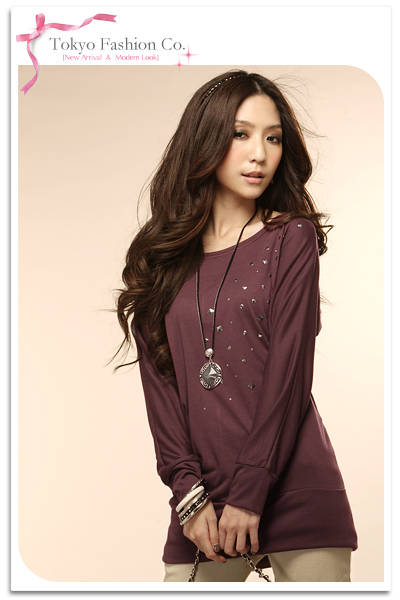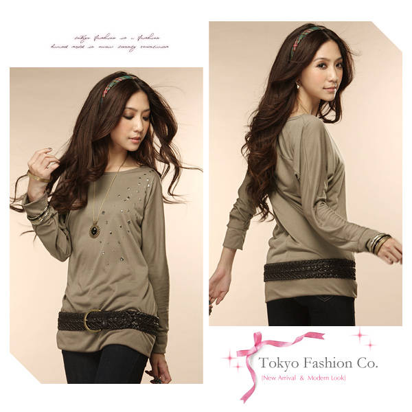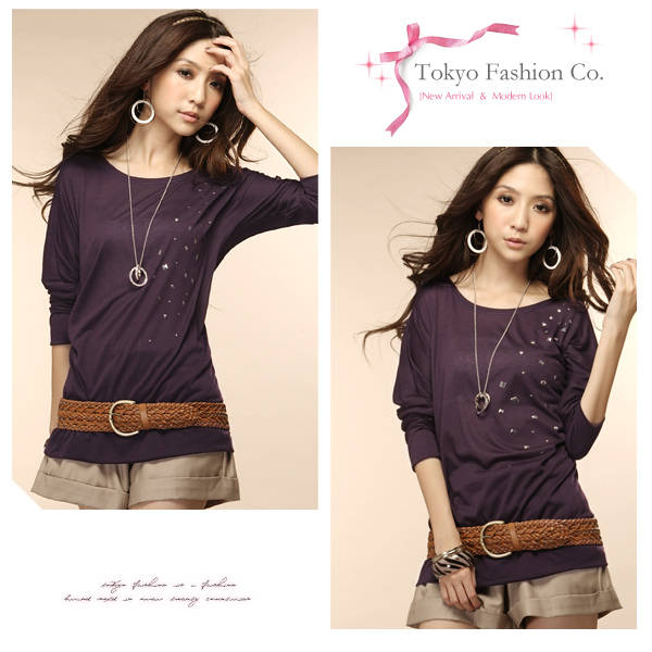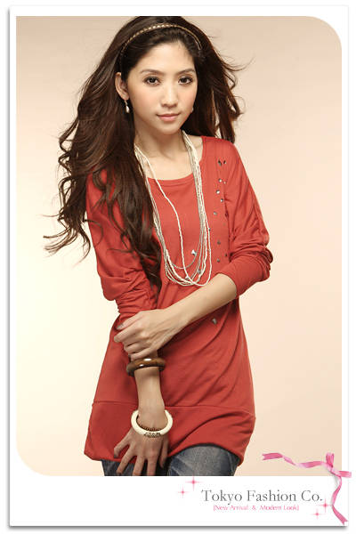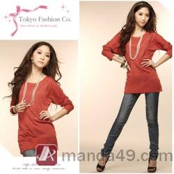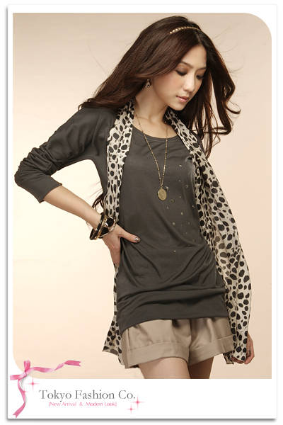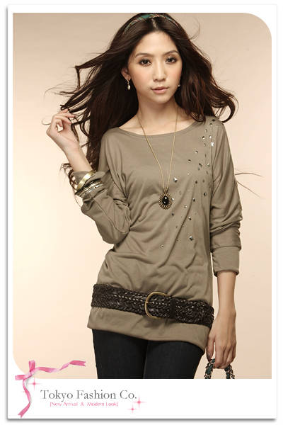 Amanda49 New Arrival Silver Strip Decorated Long Pattern Cotton T-shirt |
