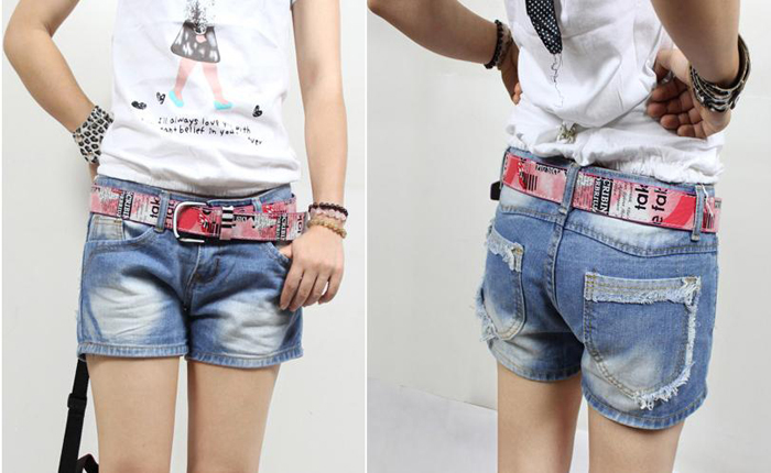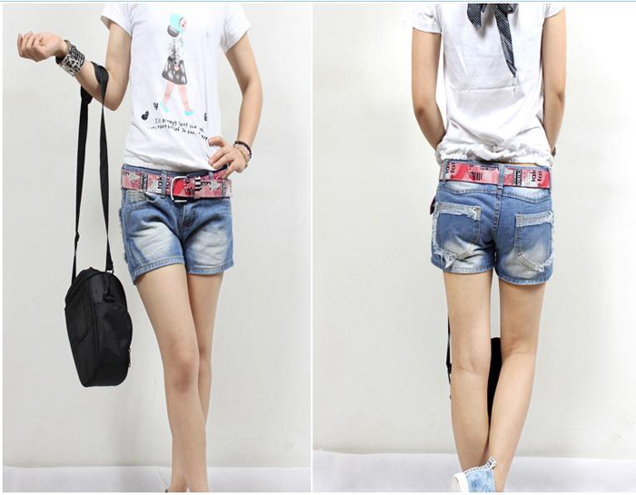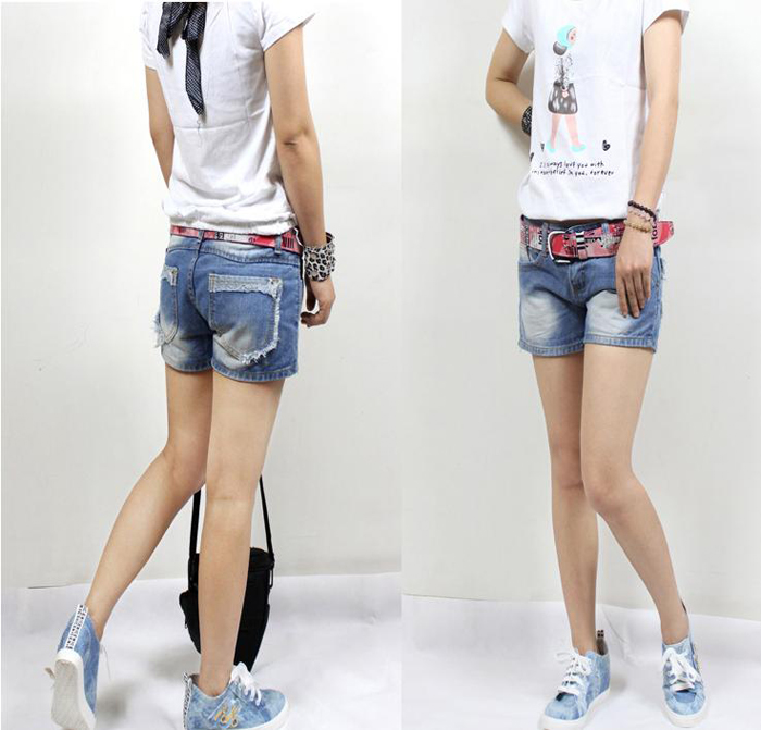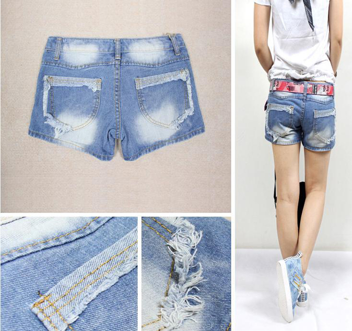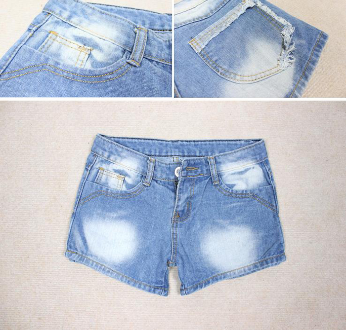 Amanda49 New Arrival Simple Design Low Waist Mix-Matched Short Jeans |