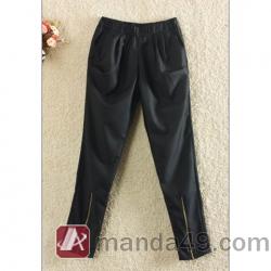 Amanda49 New Arrival Zipper Embellished Legopening Elastic Waist Trousers |
