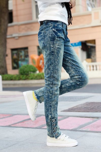 Amanda49 New Fashion Special Button Design Snow Pencil Jeans |