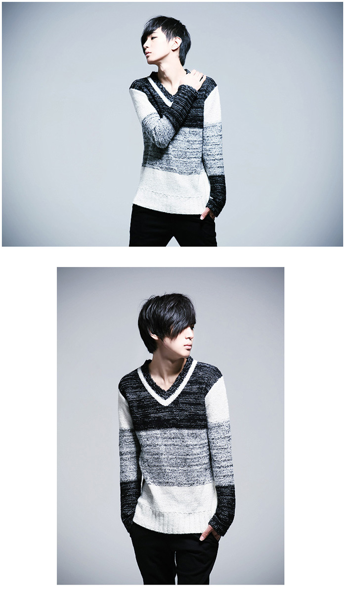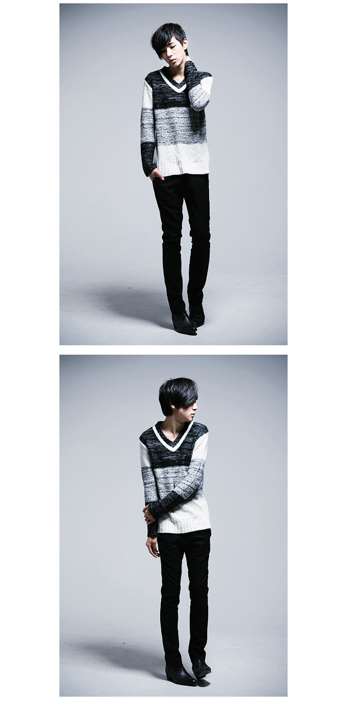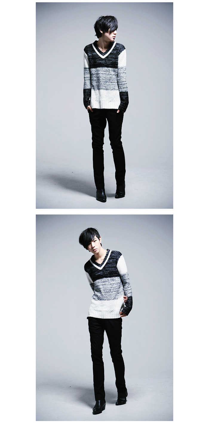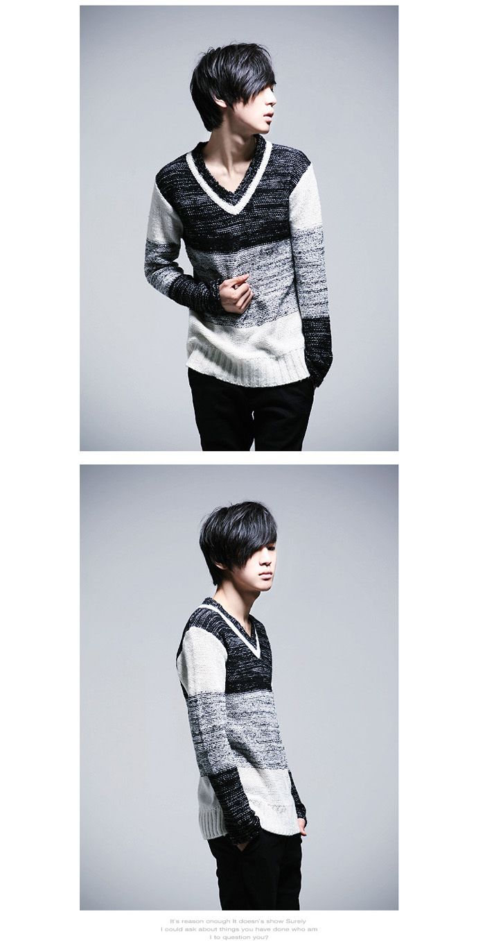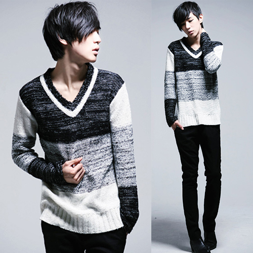 Amanda49 New In Corean Fashion and Casual Style V-Neck and Color Gradient Design Sweater For Man |