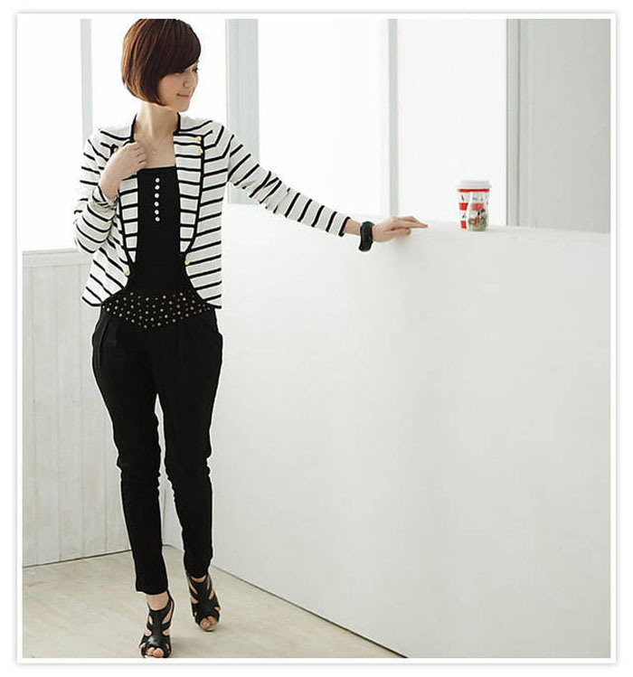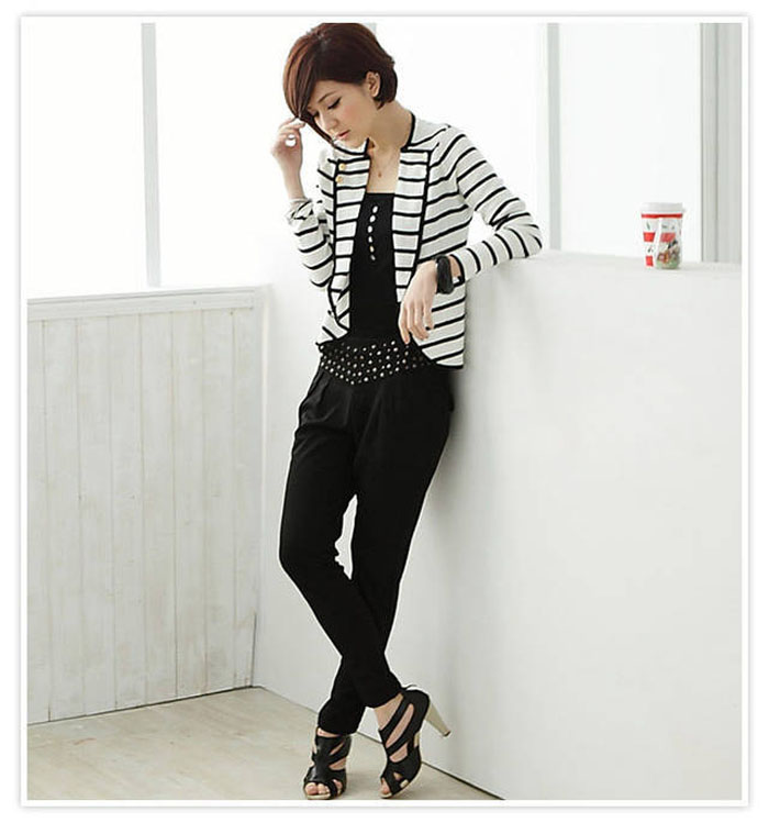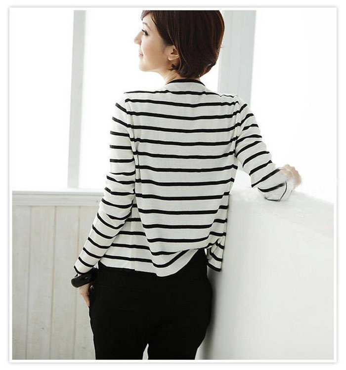 Amanda49 New Navy Style Turndown Collar and Stripe Short Coat For Female |