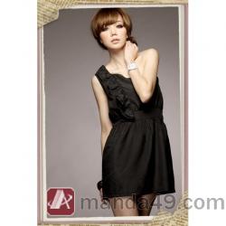 Amanda49 One-Shoulder Oblique Lotus Leaf Shape Design Short Dress--Women's Dresses(Black) |