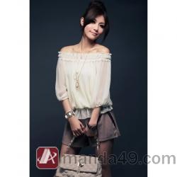 Amanda49 Personalized Loose White Chiffon Neckline Embellished Blouse With Lining For Women |