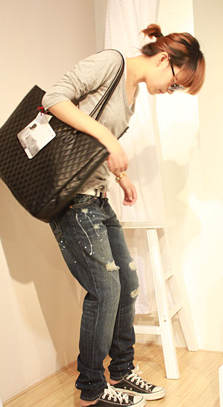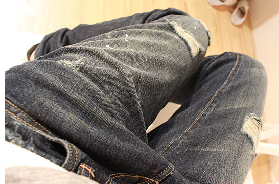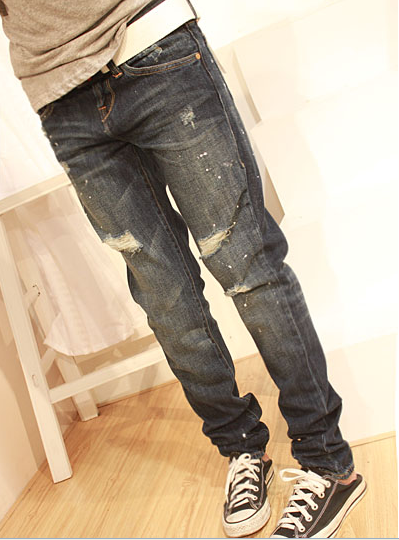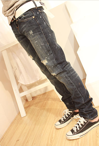 Amanda49 Popular Broken Style Splash-Ink Dark Blue Long Jeans For Women |