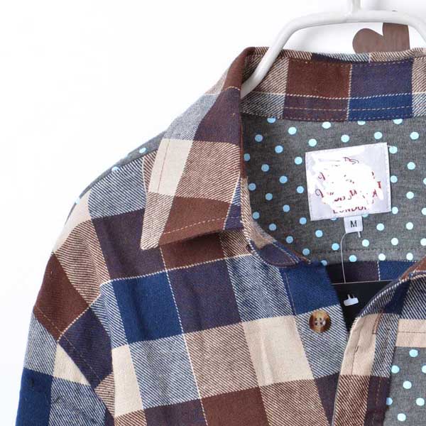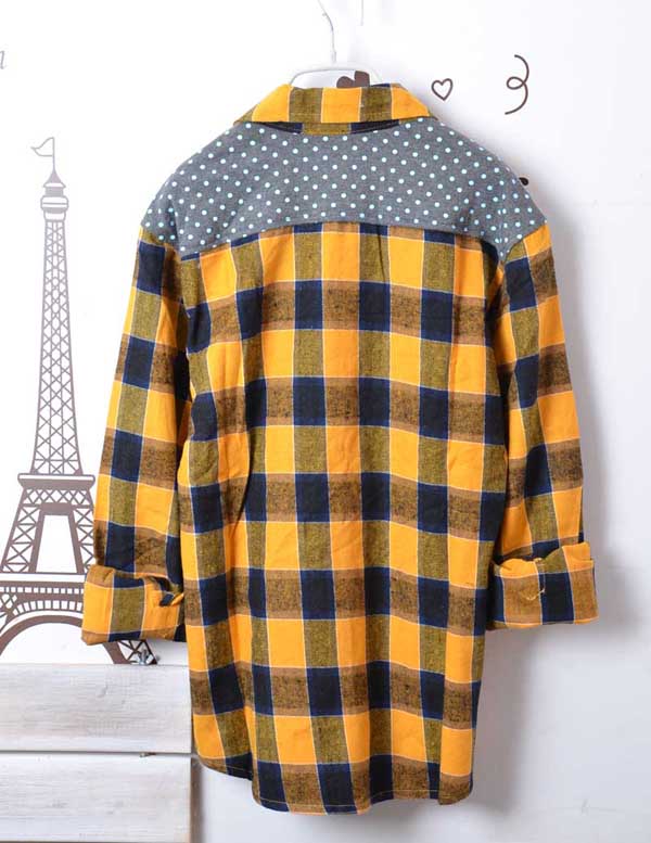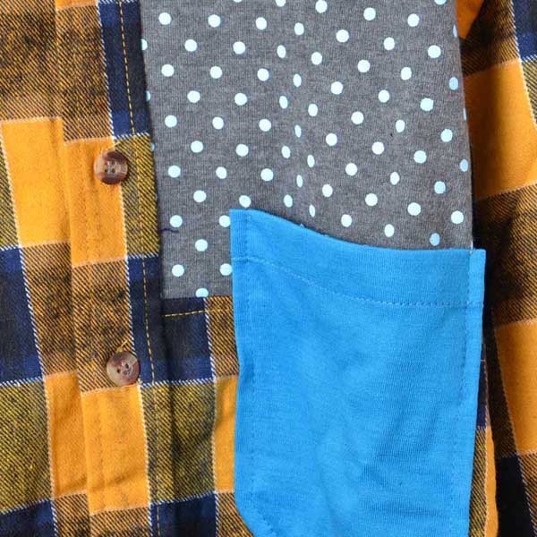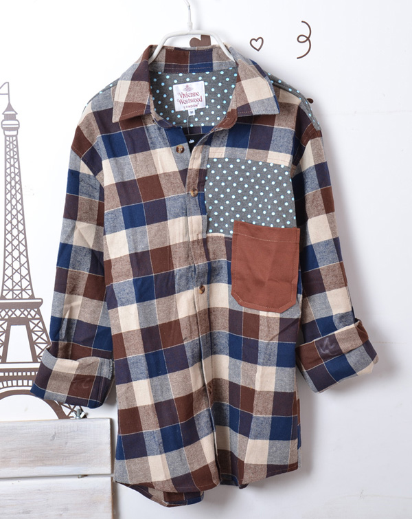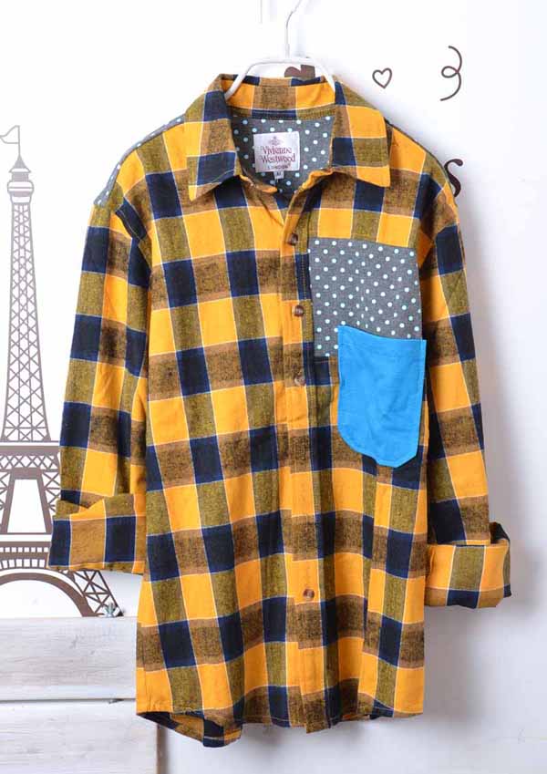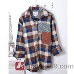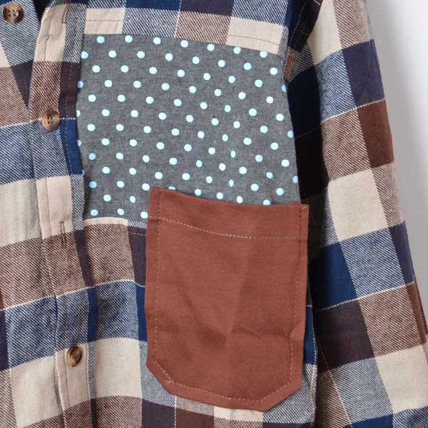 Amanda49 Popular Lapel Grid Style Colormatching Pocket Long Sleeves Shirt For Men |