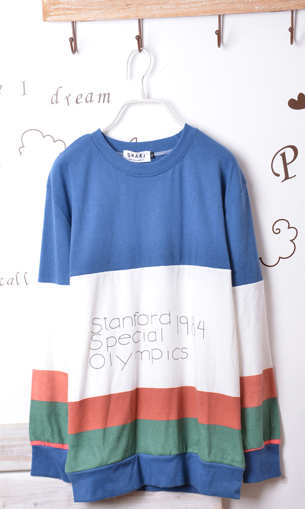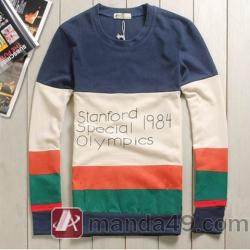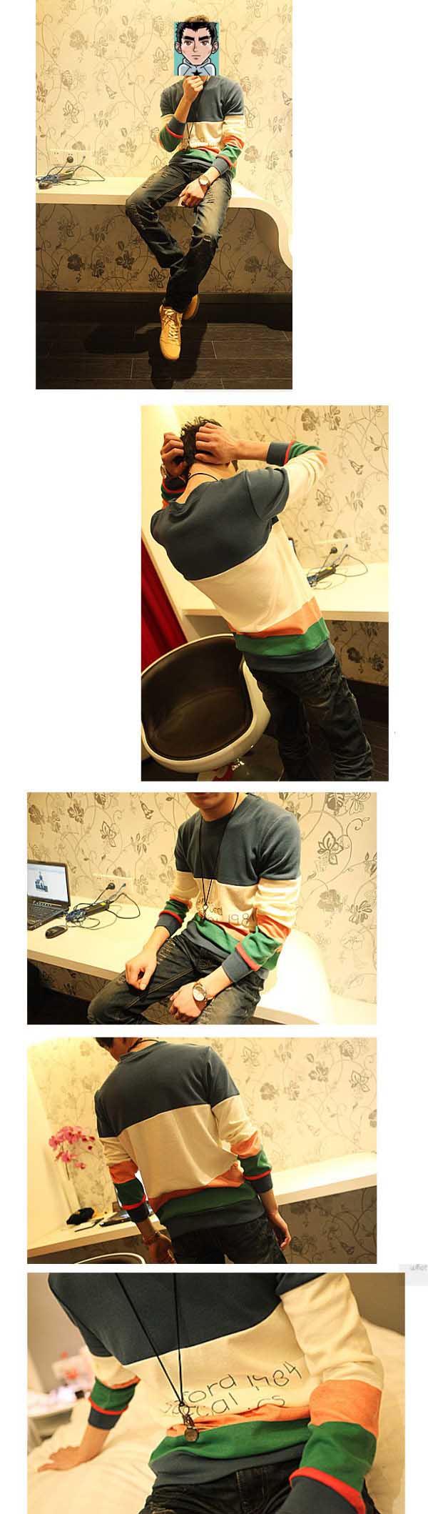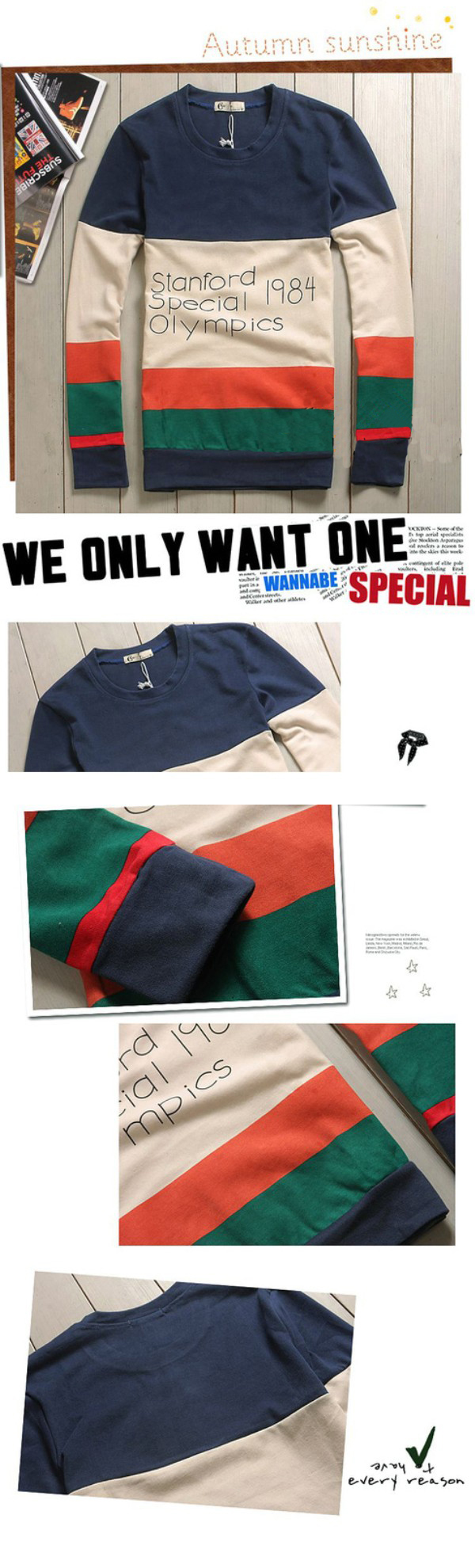 Amanda49 Popular Round Neckline Colormatching Words Pattern Dark Blue Long Sleeves Blouse For Men |