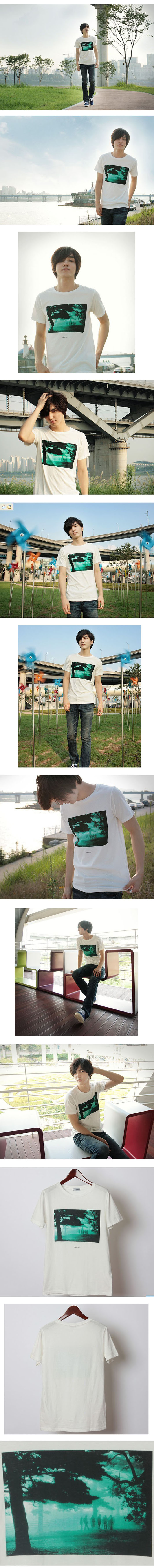 Amanda49 Popular Round Neckline Forest Printed White Sleeves Cotton T-Shirt For Men |