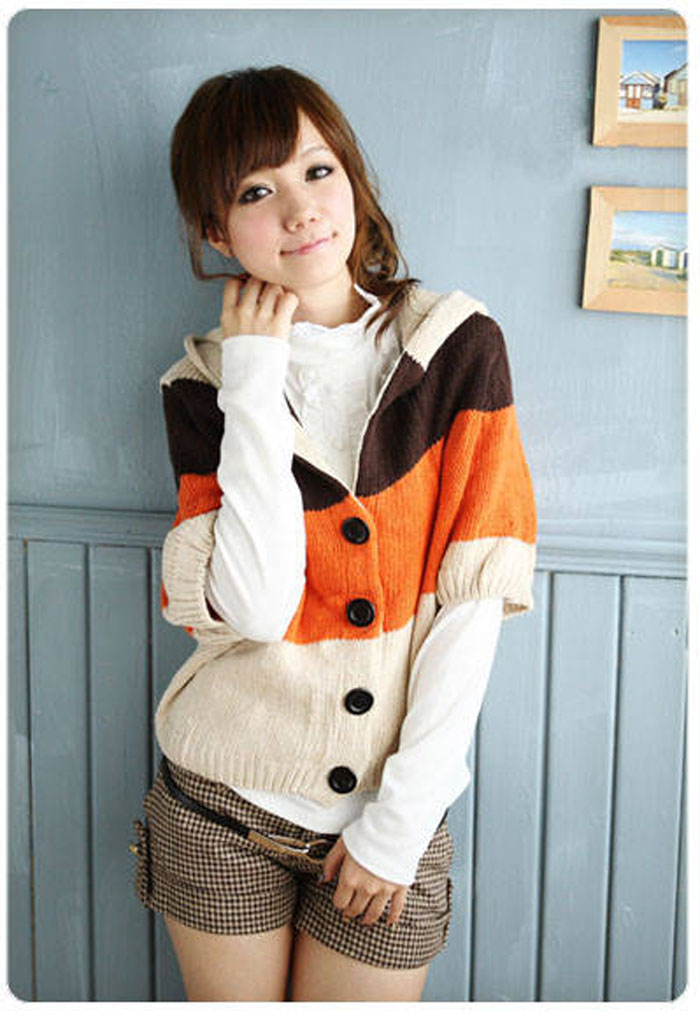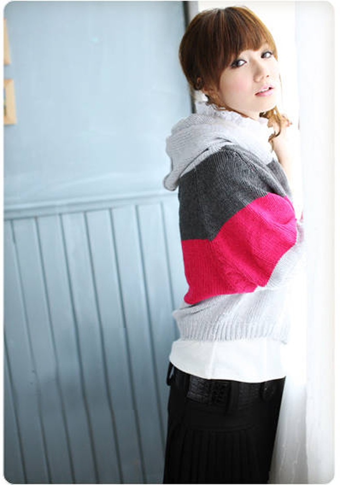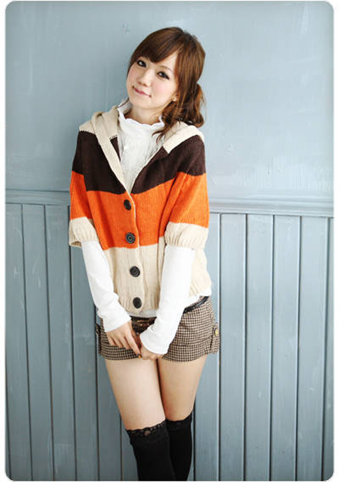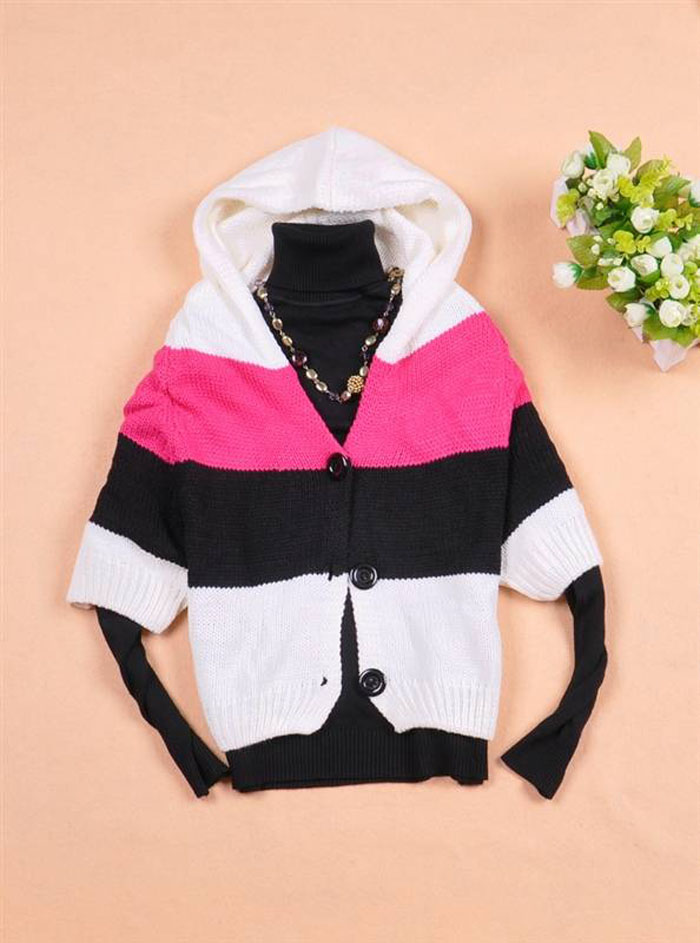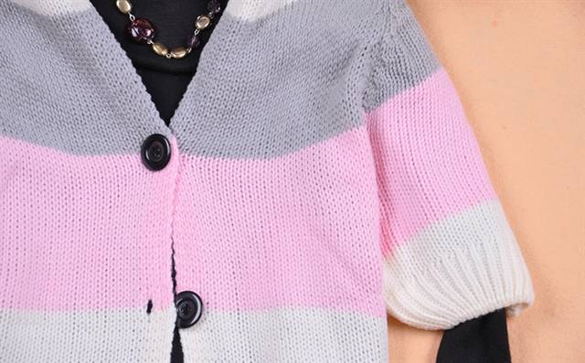 Amanda49 Popular Stripes Bat-Wing Quarter Sleeves Cotton Coat For Women |