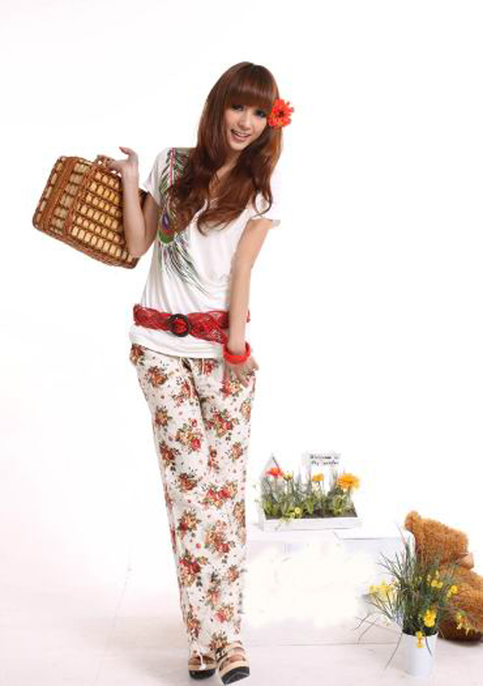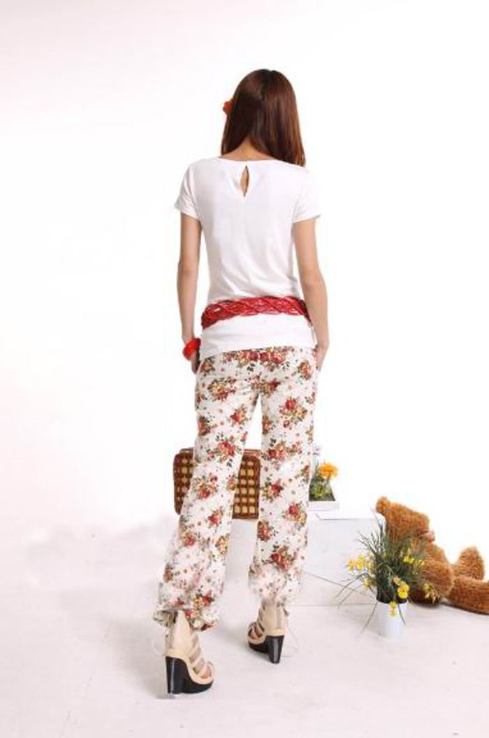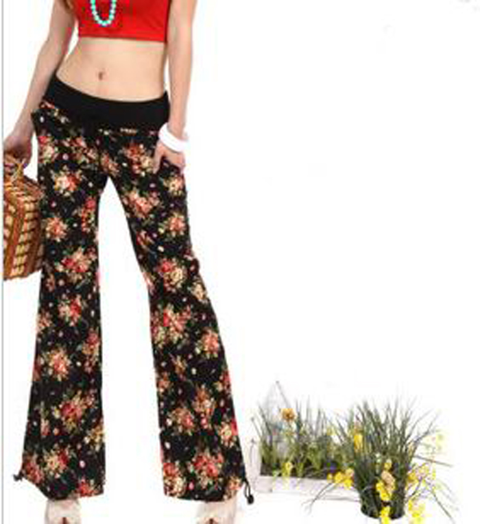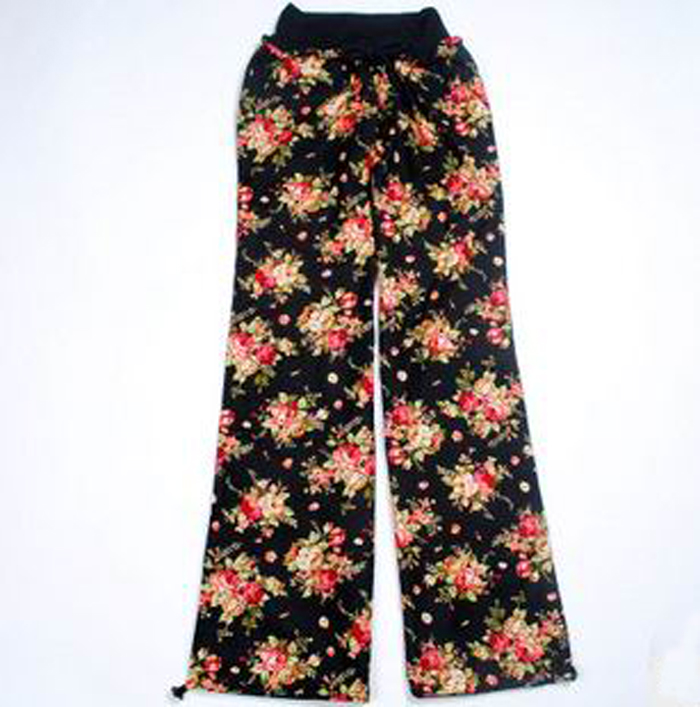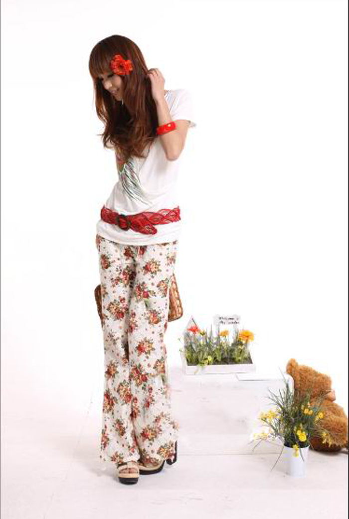 Amanda49 Refresh Style Floral Patterns Elastic Waist Trousers |