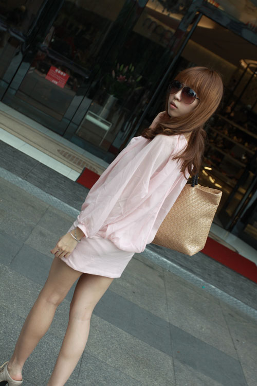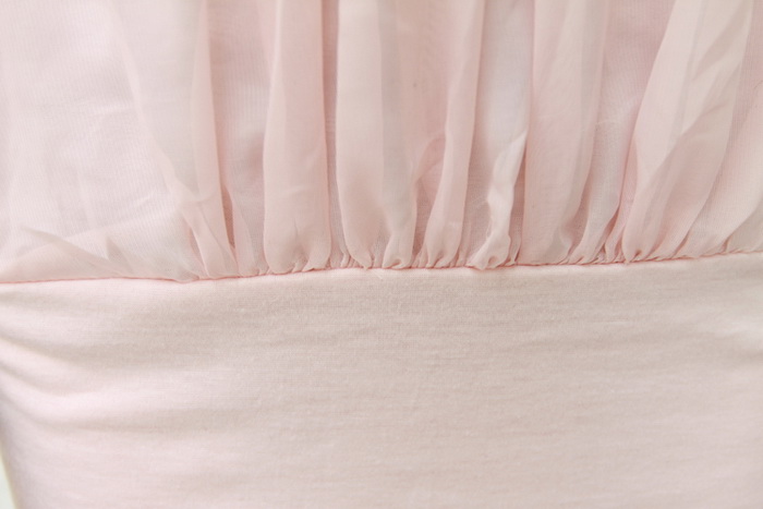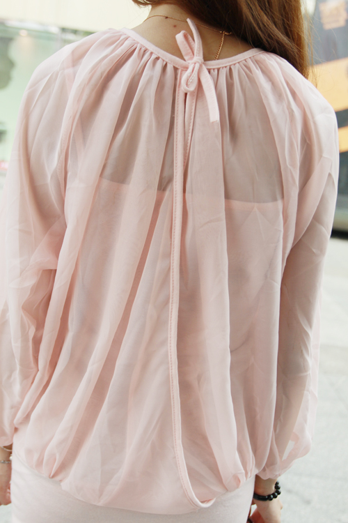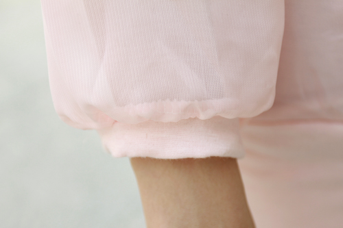 Amanda49 Refreshing and Charming Round Neckline Frills Pink Long Sleeves Cotton+Chiffon Blouse For Women |