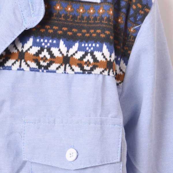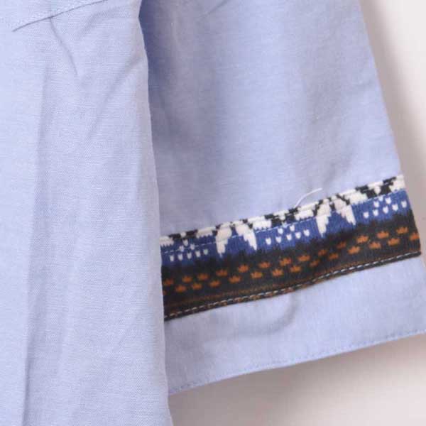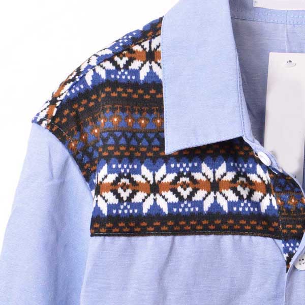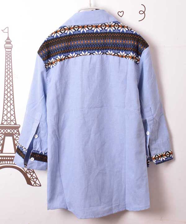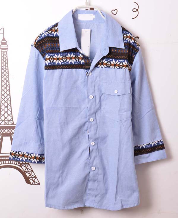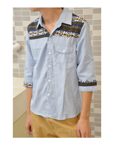 Amanda49 Refreshing Lapel Nation Patterns Hem Three Quarters Light Blue Sleeves Shirting+Knitted Fabric Shirt For Men |