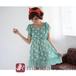 Amanda49 Round Neckline Elastic Waist Design Green Chiffon Short Dress--Women's Dresses |