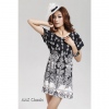 Amanda49 Round Neckline Printed Patterns Black Short Sleeve Dress--Women's Dresses |