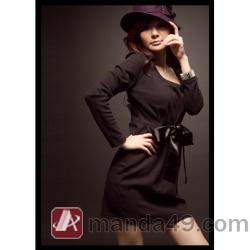 Amanda49 Round Neckline with Bow Belt Coffee Long Sleeves Dress--Women's Dresses |