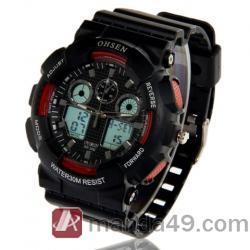Amanda49 Rubber Double Movement Watch w/ Alarm and Day of Week - Black with Red |