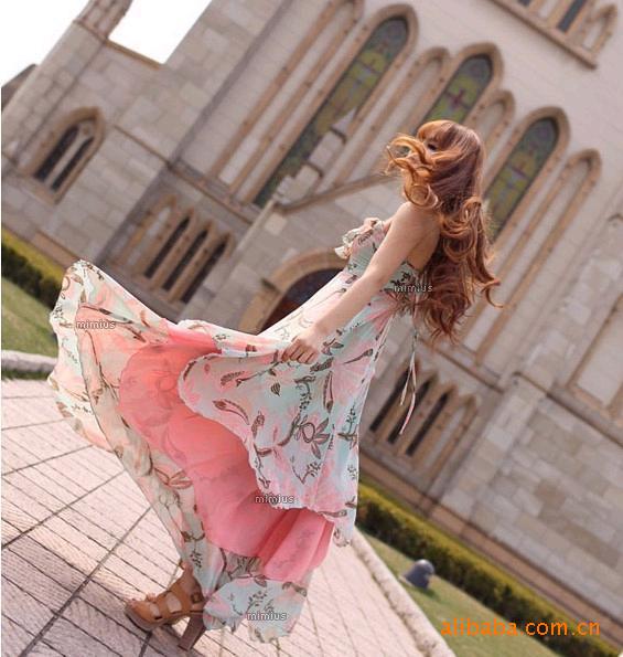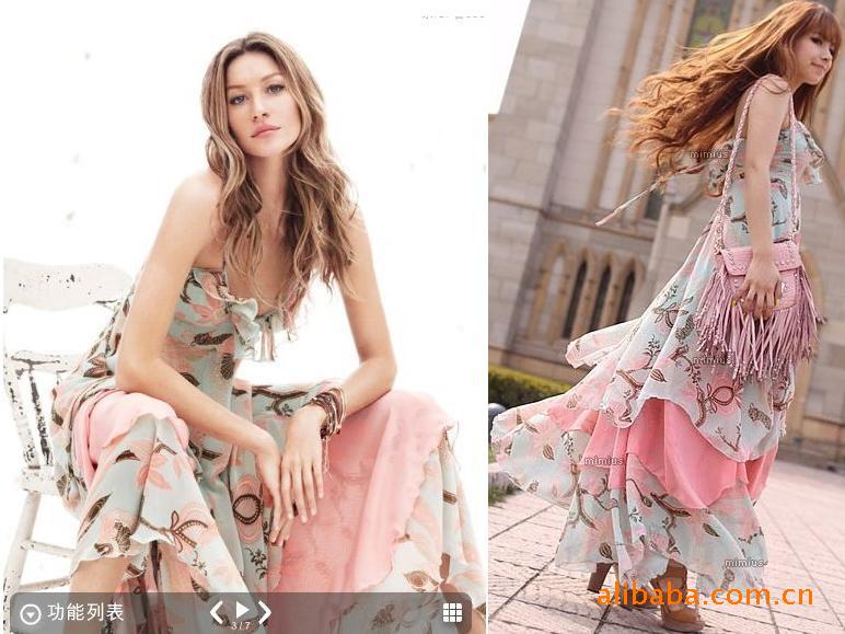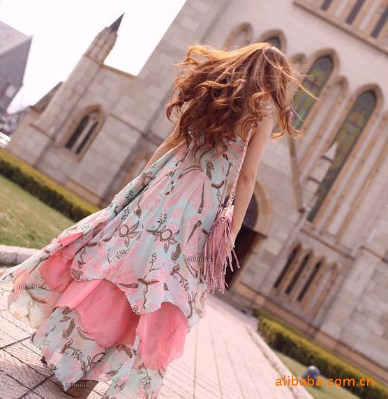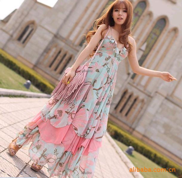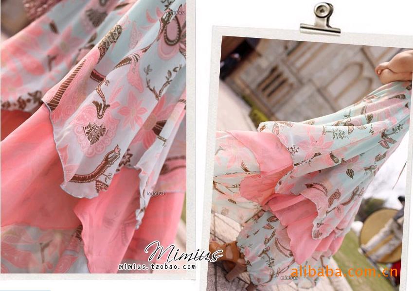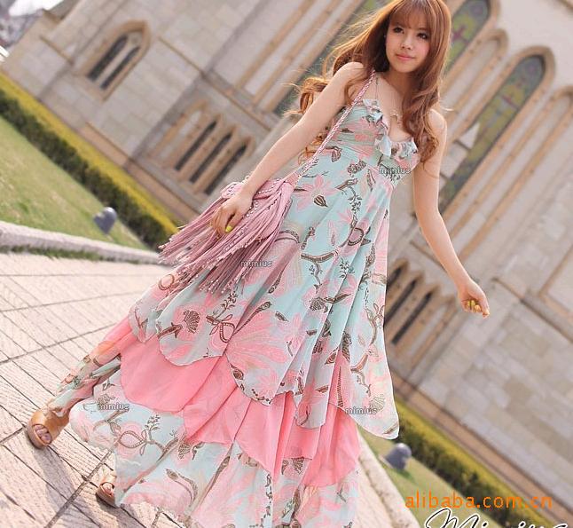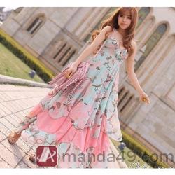 Amanda49 Sexy and Grace Floral Print Layered Ruffles Hem Design Sleeveless Maxi dress |