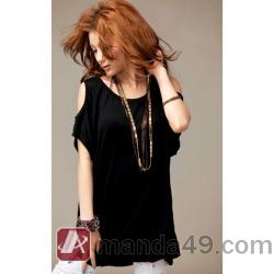 Amanda49 Sexy Black Cotton Off-the-Shoulder SpringSummer Blouse |