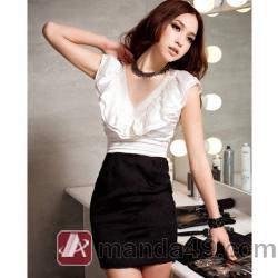 Amanda49 Sexy Deep V-Neck Lotus Leaf Design Collar Sleeveless Dress--Women's Dresses |