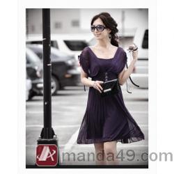 Amanda49 Shoulders Drawstring Design Purple Chiffon Short Sleeve Dress--Women's Dresses |