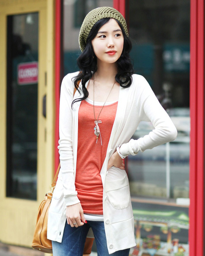 Amanda49 Simple and Slim Mix Match Single-Breasted Long Coat For Women |