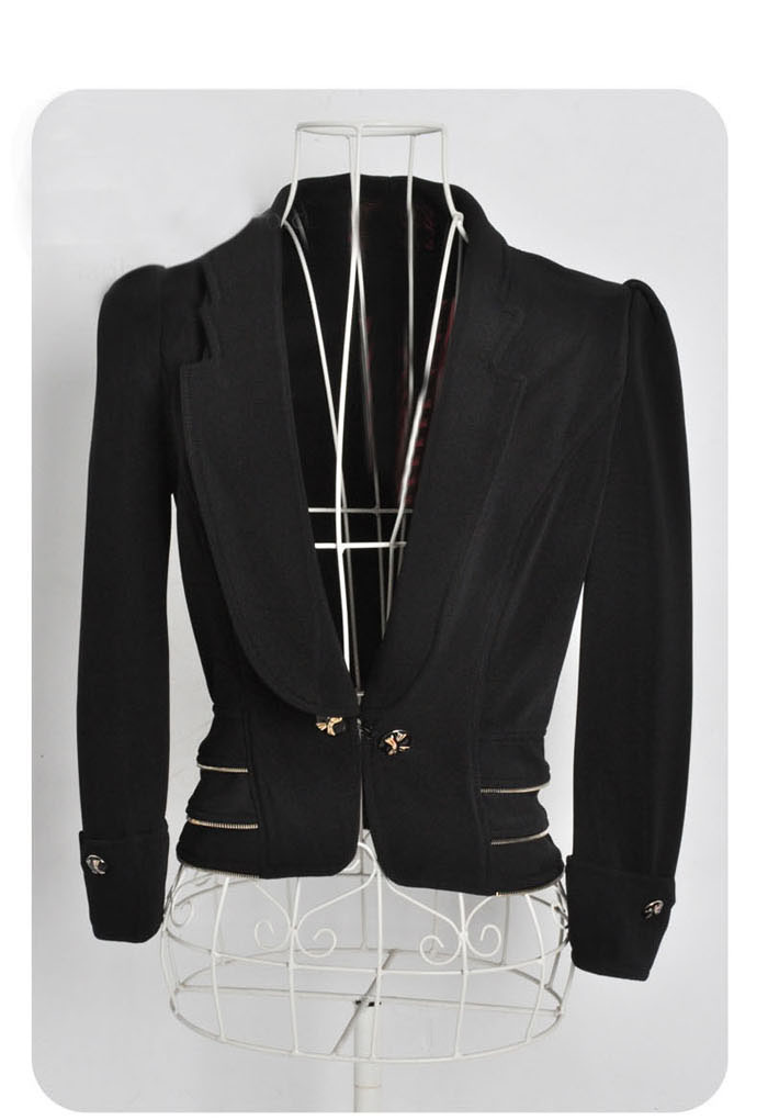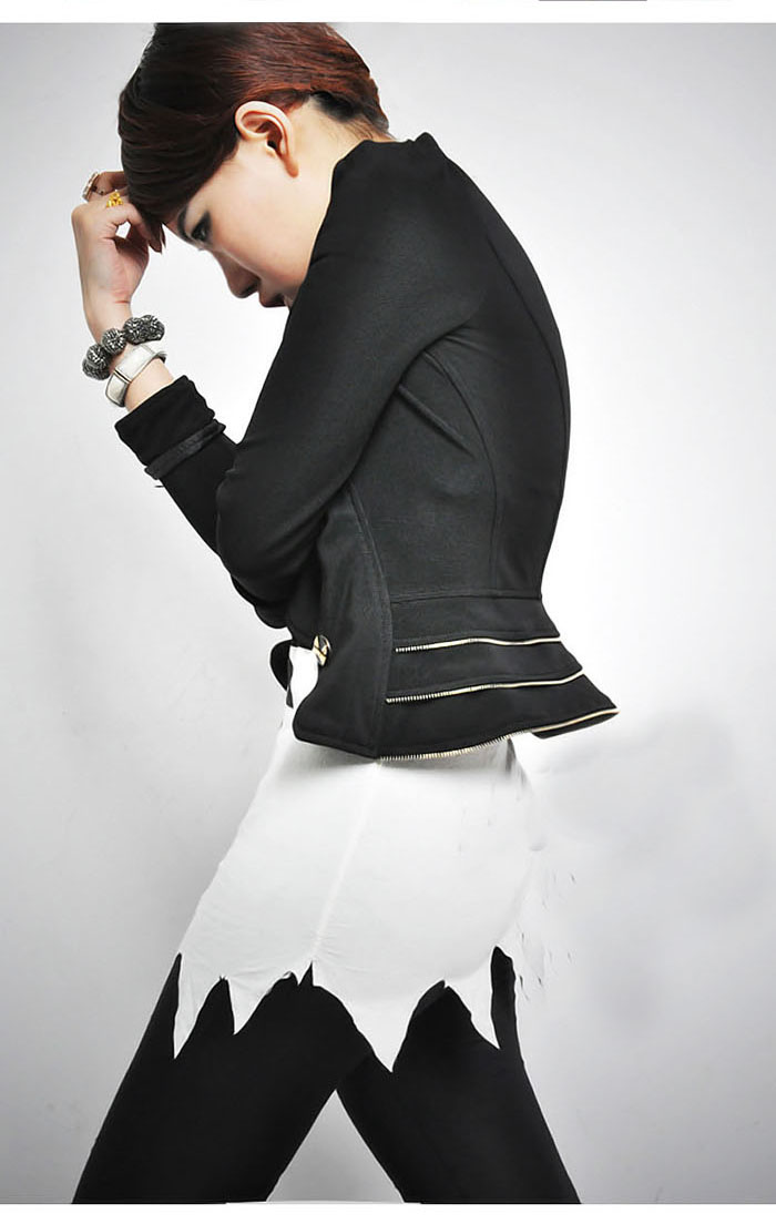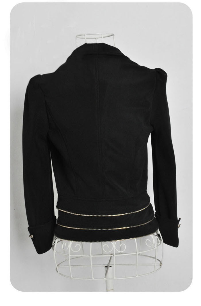Amanda49 Slim and Elegant Lapel High Waisted Special Hem Black Long Sleeves Nylon Coat For Women |
