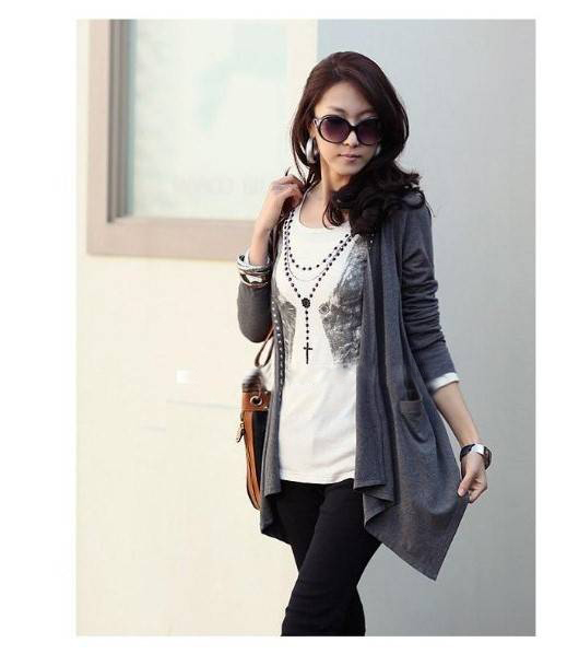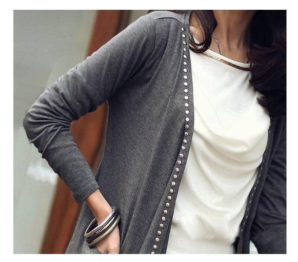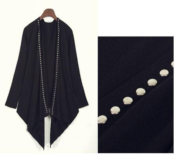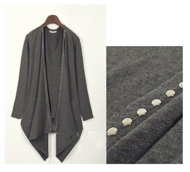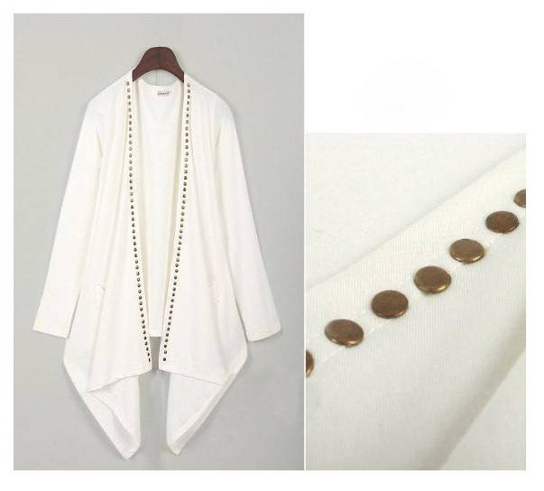 Amanda49 Slim and Elegant Rivets Embellished Long Sleeves Cotton Fabric Coat For Women |