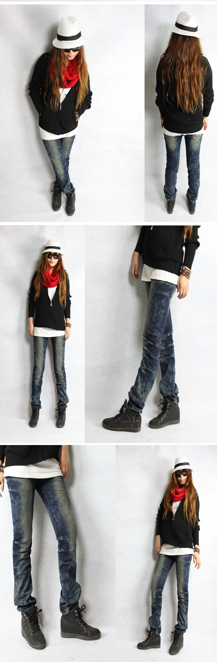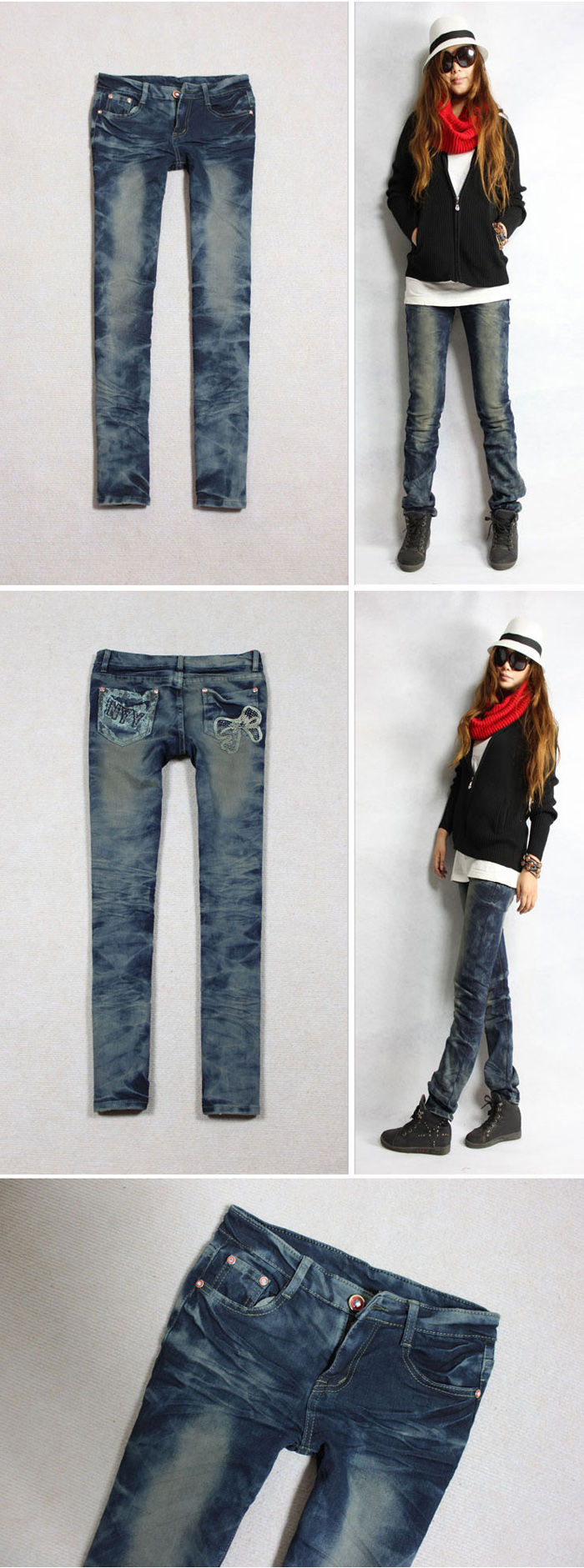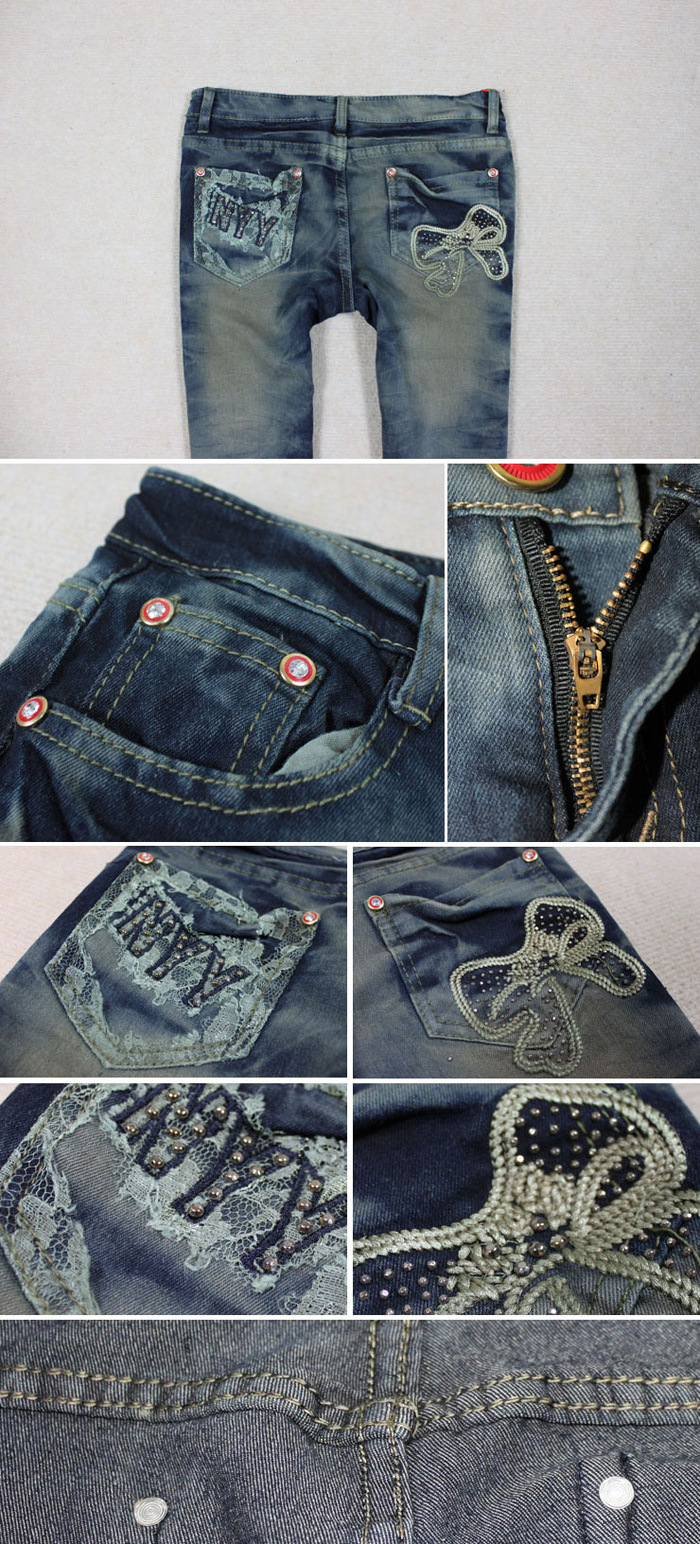 Amanda49 Slim and Exquisite Lace Rhinestone Embellished Embroidery Patterns Dark Blue Jeans For Women |