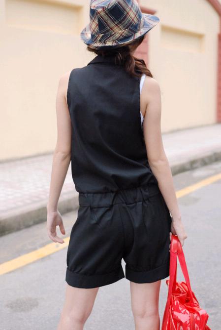 Amanda49 Slim and Fashionable Black Cotton Jumpsuits For Women |