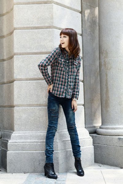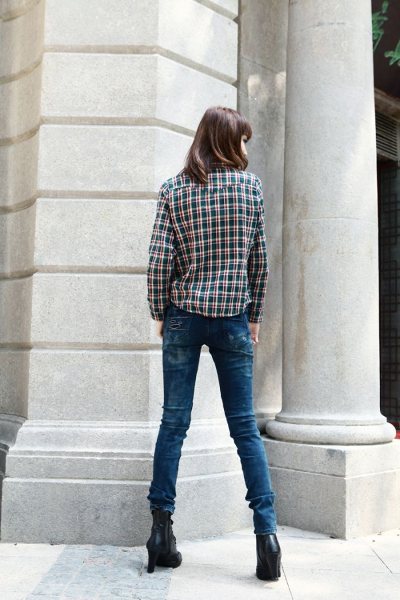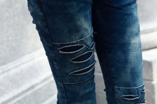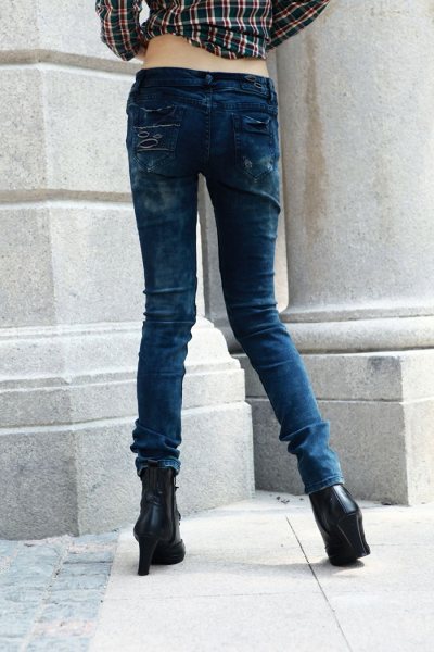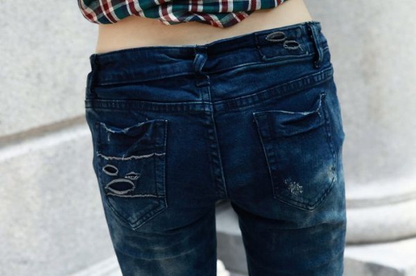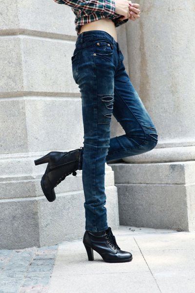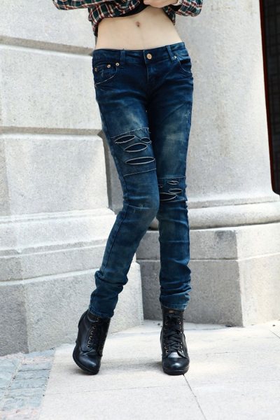 Amanda49 Slim and High Elastic Korea Fashion Blue Ripped Jeans |