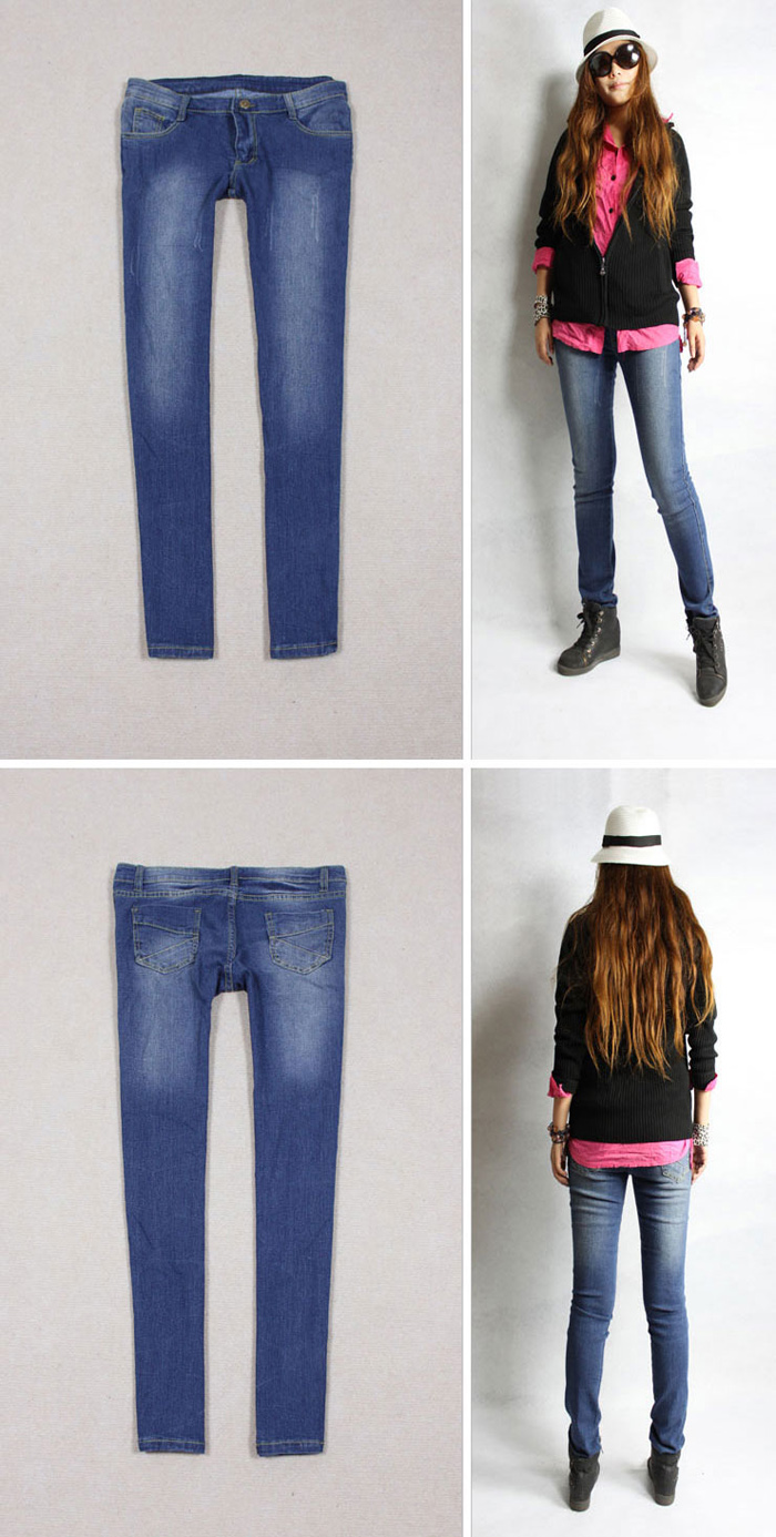 Amanda49 Slim and Refreshing Low Waist Old Style Blue Feet Jeans For Women |