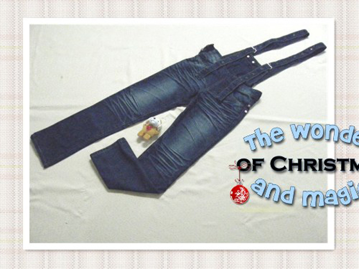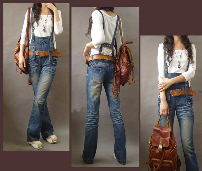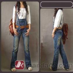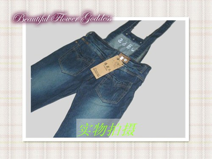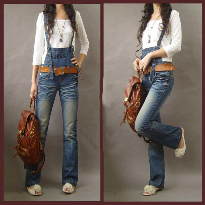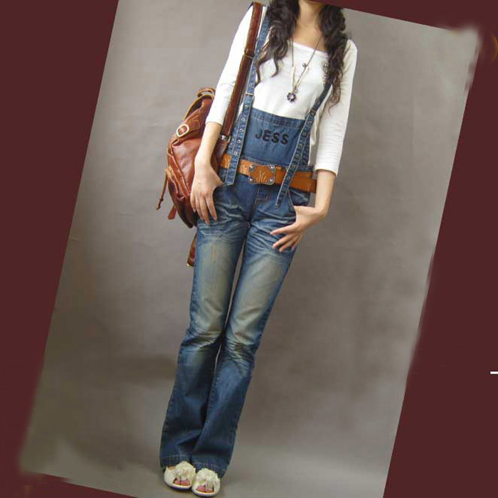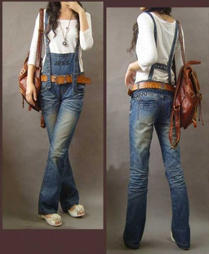 Amanda49 Slim Frills Letter Printed Dark Blue Jeans Overalls For Women |