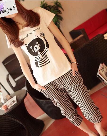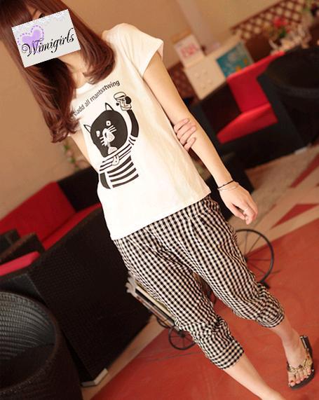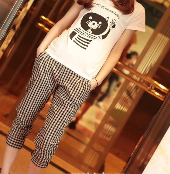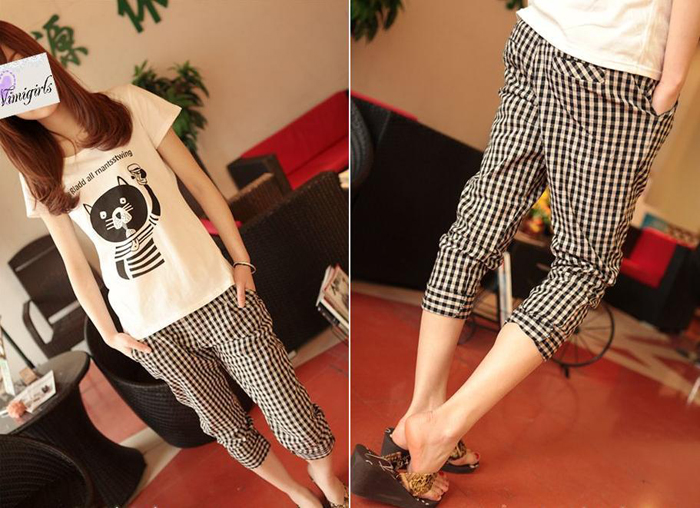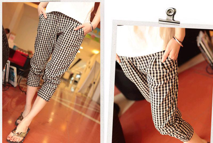 Amanda49 Slim Grid Style Cotton Blend Short Trousers For Women |