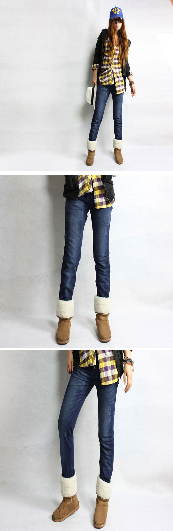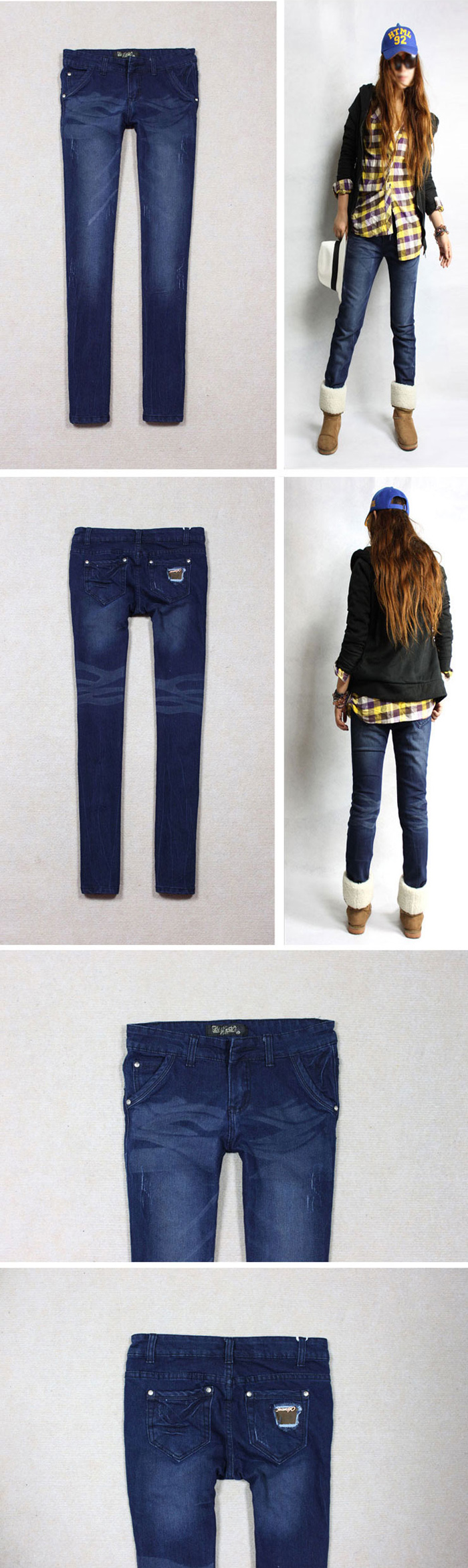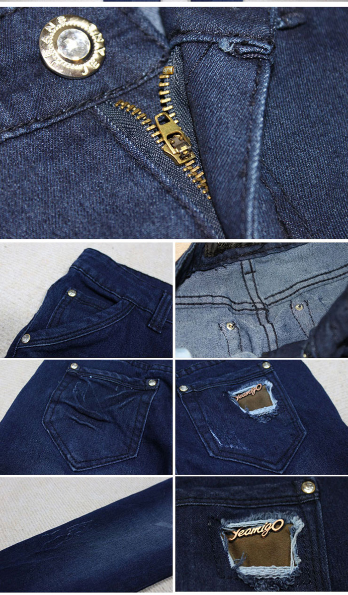 Amanda49 Slim Korea Broken Hole Style Low Waist Blue Jeans For Women |