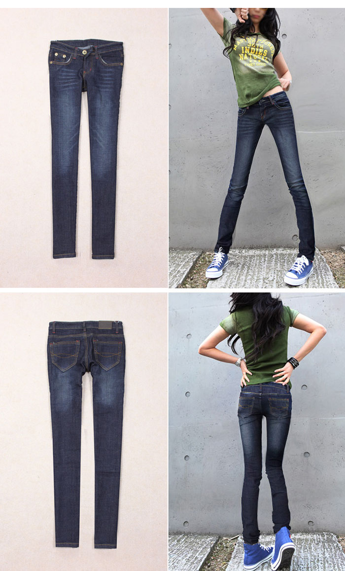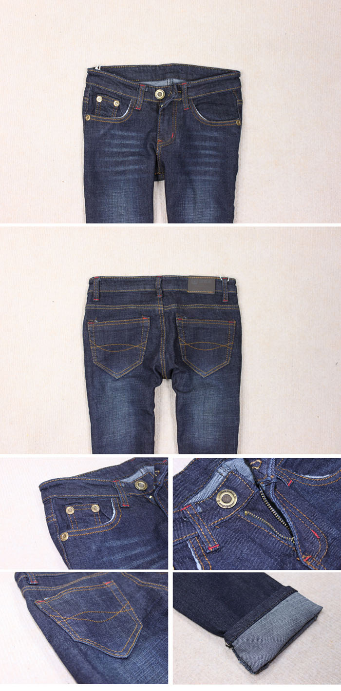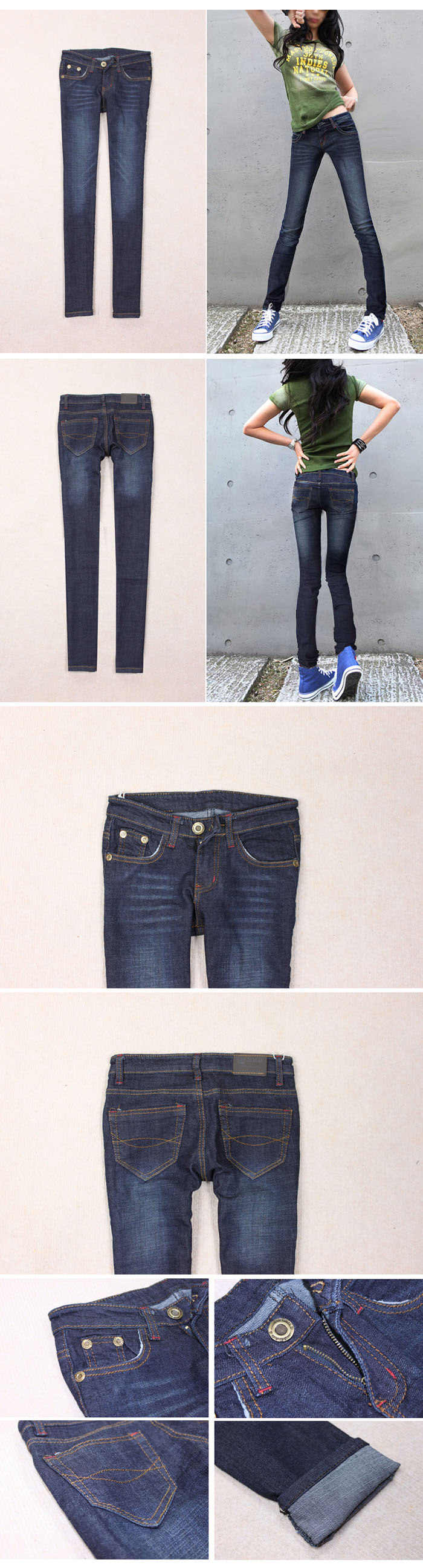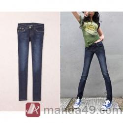 Amanda49 Slim Old Style Wave Line Embellished Pocket Blue Elastic Jeans Long Trousers For Women |