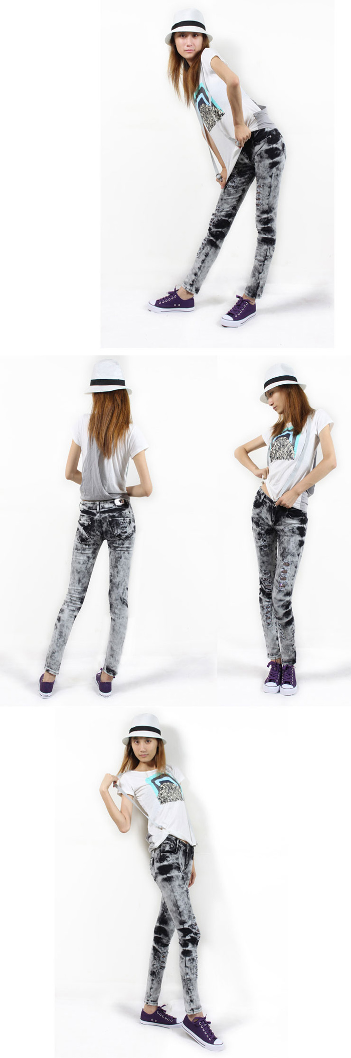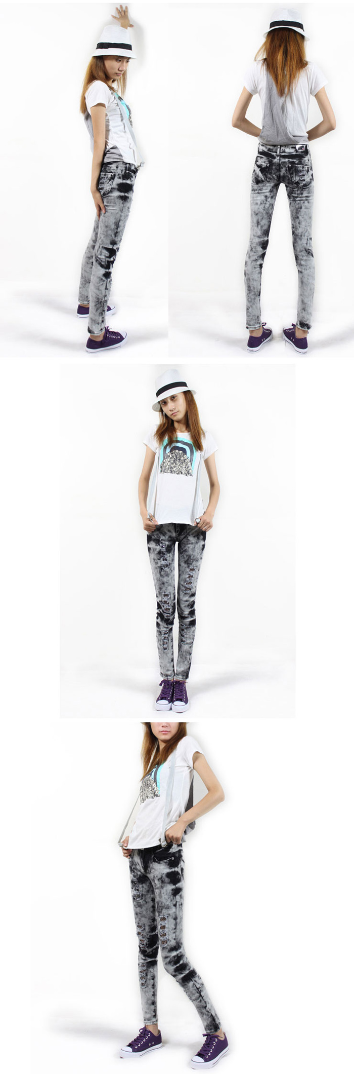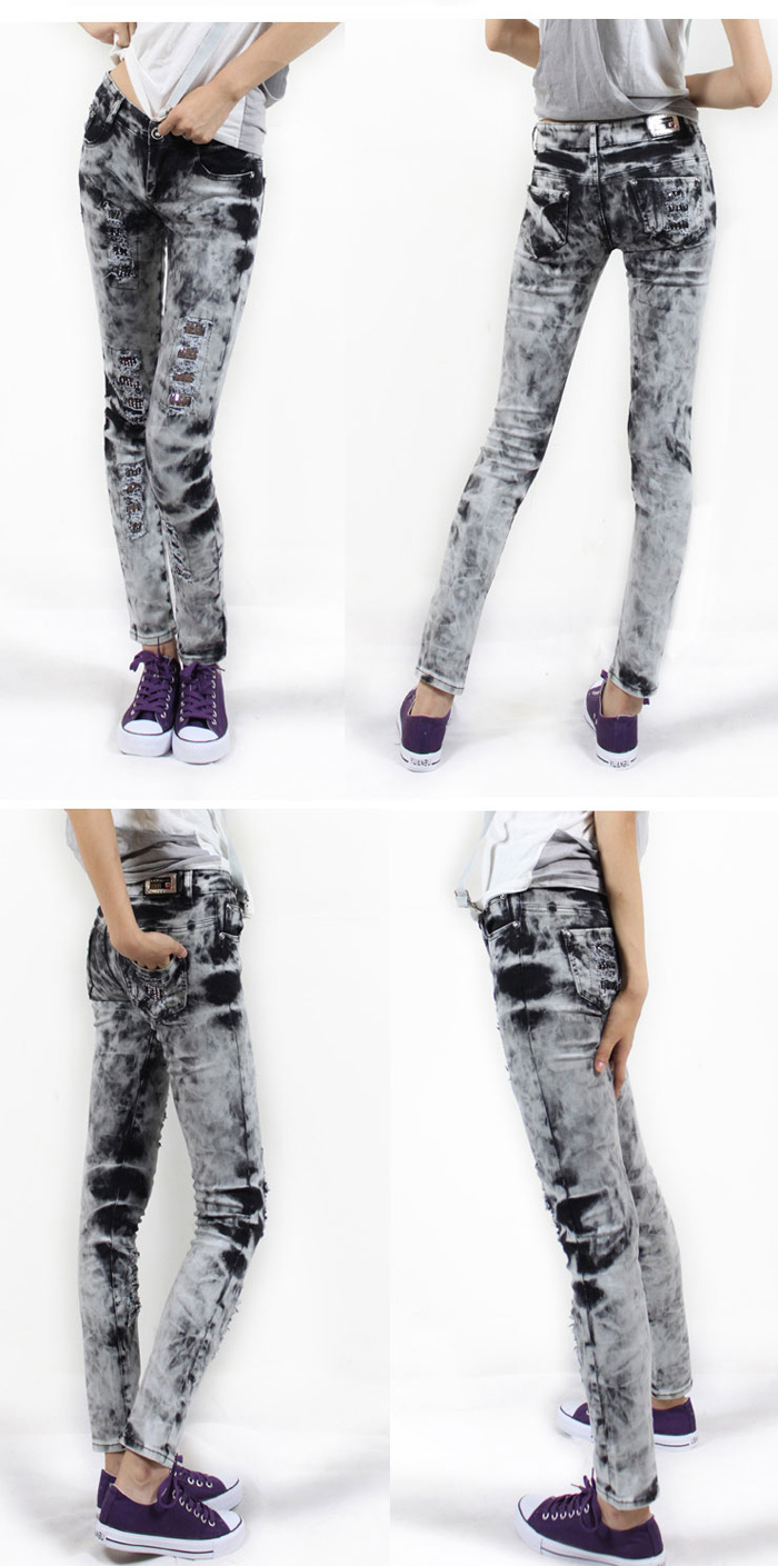 Amanda49 Snow Broken Hole Style Sequin Embellished Black Jeans For Women |