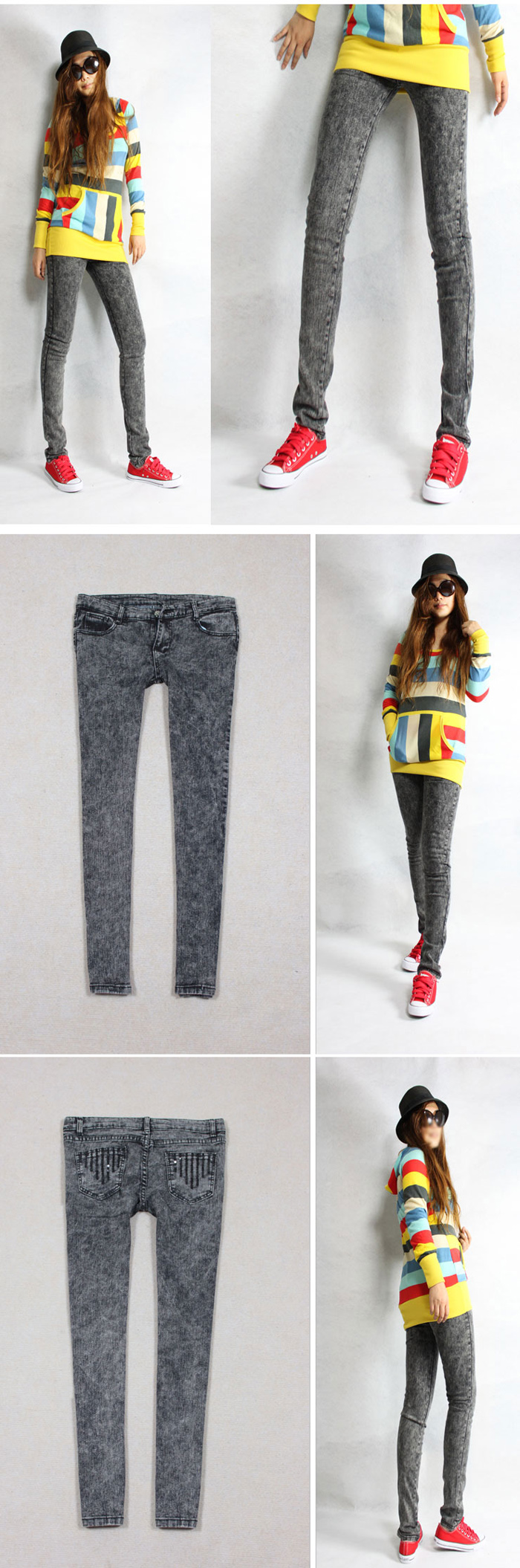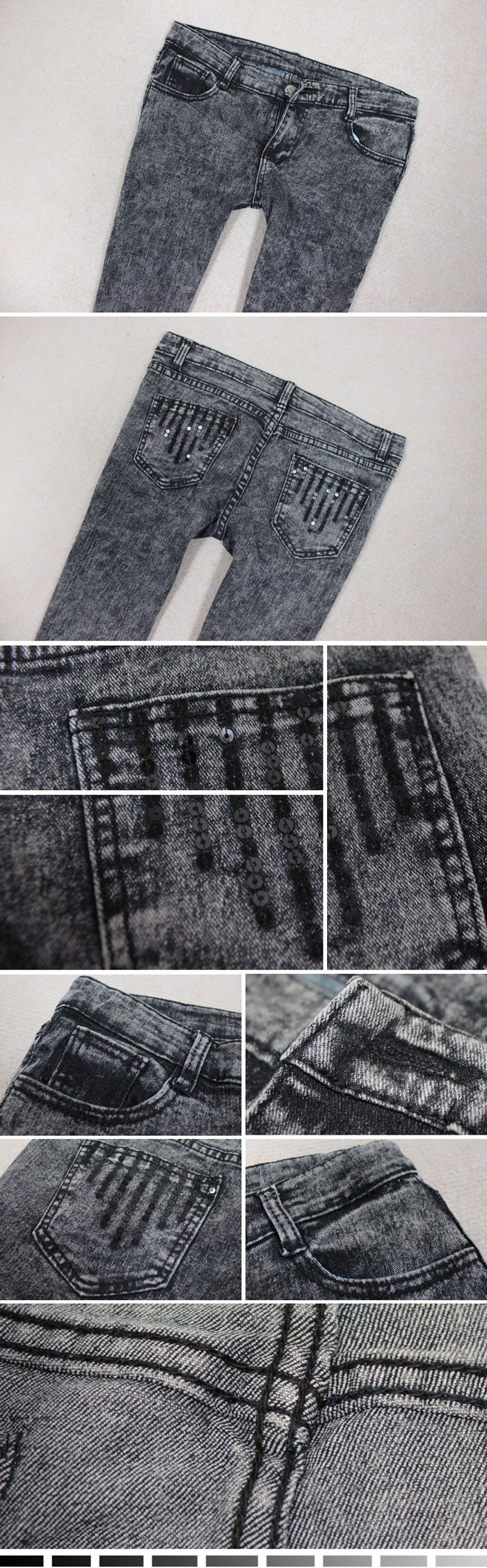 Amanda49 Snow Style Vertical Scratch Embellished Back-Pocket Black Jeans For Women |
