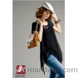 Amanda49 Special Design Chiffon + Cotton Black Short Sleeves Blouse--Women's Blouses |