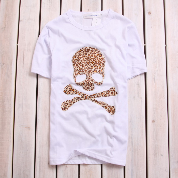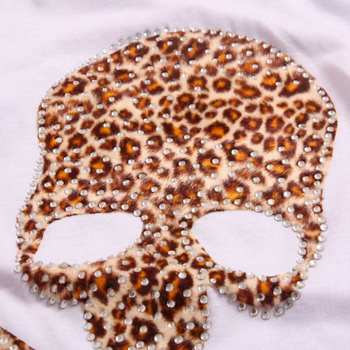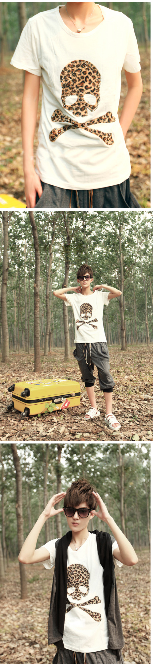 Amanda49 Special Leopard Ghost Printed Round Neckline White Sleeves Cotton Fabric T-Shirt For Men |