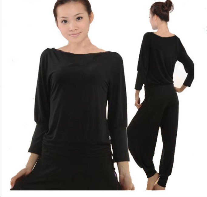 Amanda49 Special Offer Extra Large Size Long Sleeve Black Yoga Clothing Dance Suit |