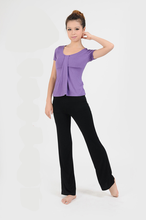 Amanda49 Special Offer Summer Fashion Top Grade Purple Blouse and Black Trousers Yoga Clothing Dance Suit |