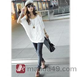 Amanda49 Special Shoulder Design Batwing Sleeves Gathered Design Loose Blouse |