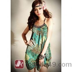 Amanda49 Specially Designed Shoulder Strap Green Silk Ice Sleeveless Short Dress--Women's Dresses |