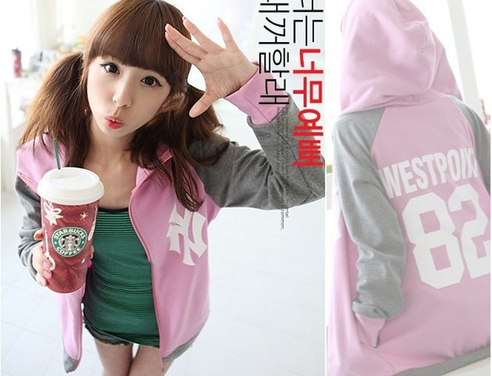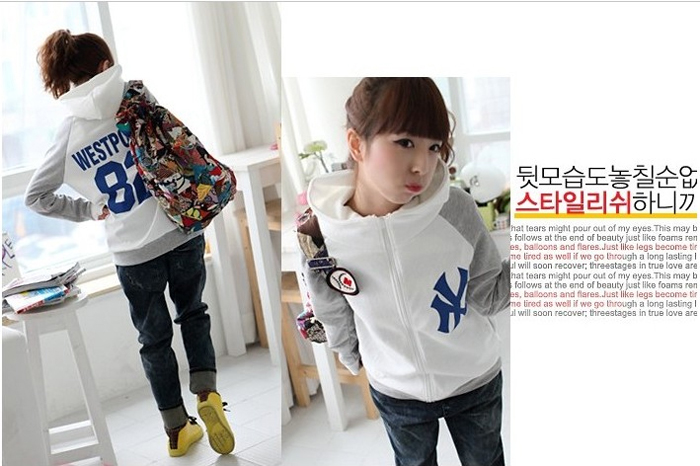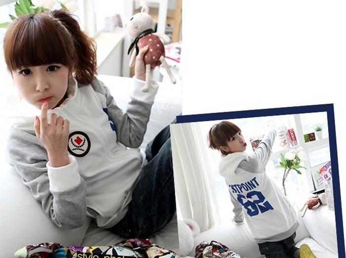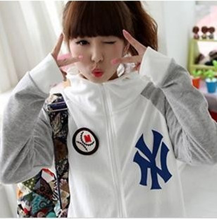 Amanda49 Sports School Style Baseball Patterns Zipper Long Sleeves Fleeces Coat For Women |