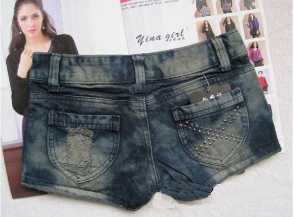 Amanda49 Spring New Arrival Rivets Embellished Ripped Culottes |