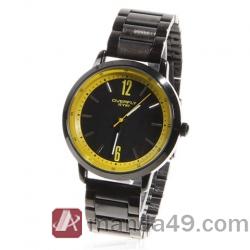 Amanda49 Stylish 8508 Round Yellow Case Stainless Steel Wrist Watch with 2 Yellow Arabic Numerals Hour Marks - Black |