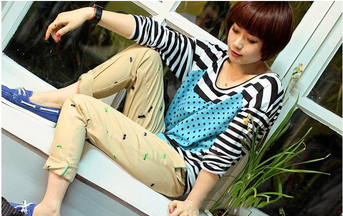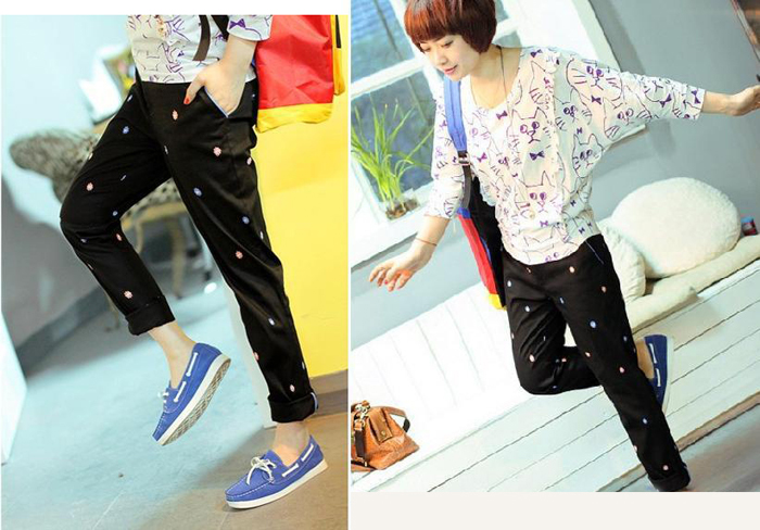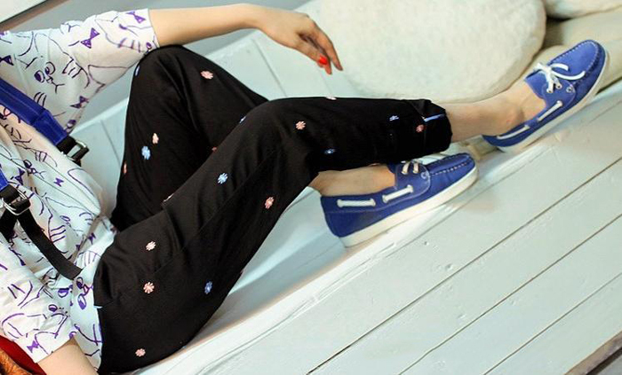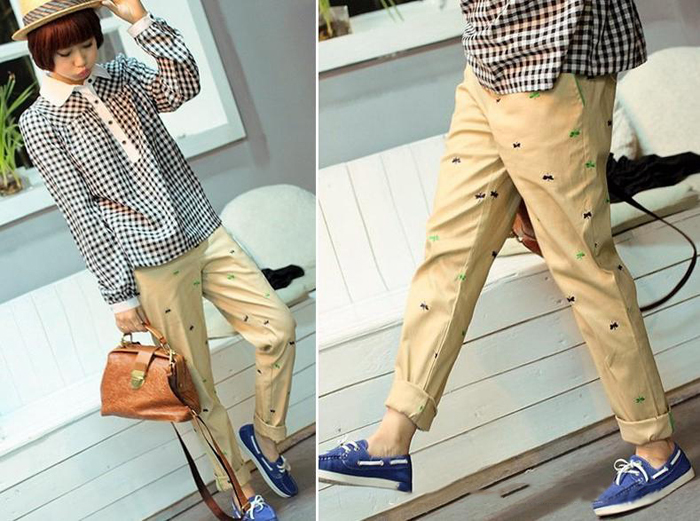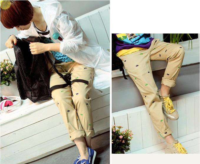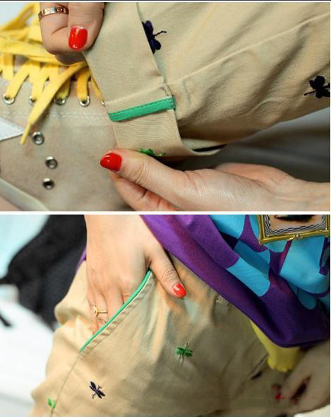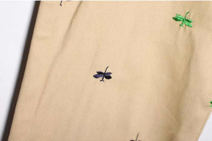 Amanda49 Stylish and Delicate Embroider Floral and Dragonfly Patterns Trousers |