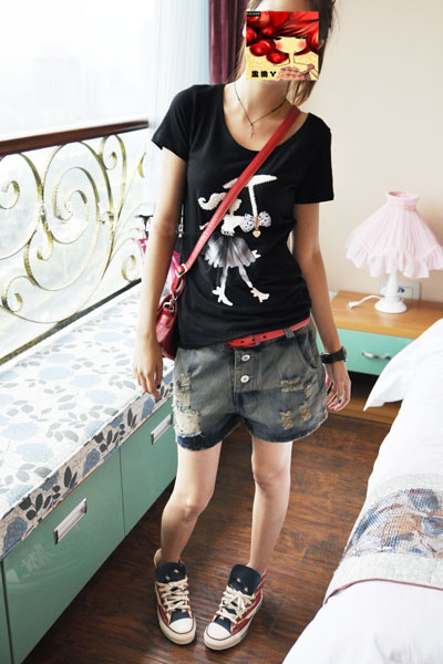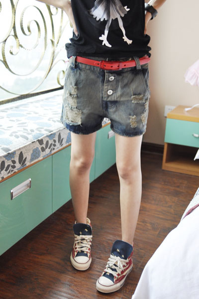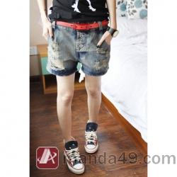 Amanda49 Stylish and Special Back Packet Design Short Baggy Jeans |